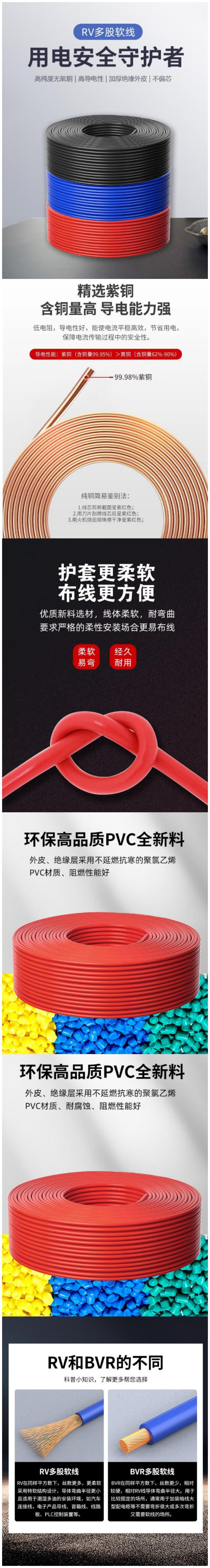 环保高品质PVC绝缘:采用全新料聚氯乙烯,具有优异的耐腐蚀性和阻燃性能,安全环保。