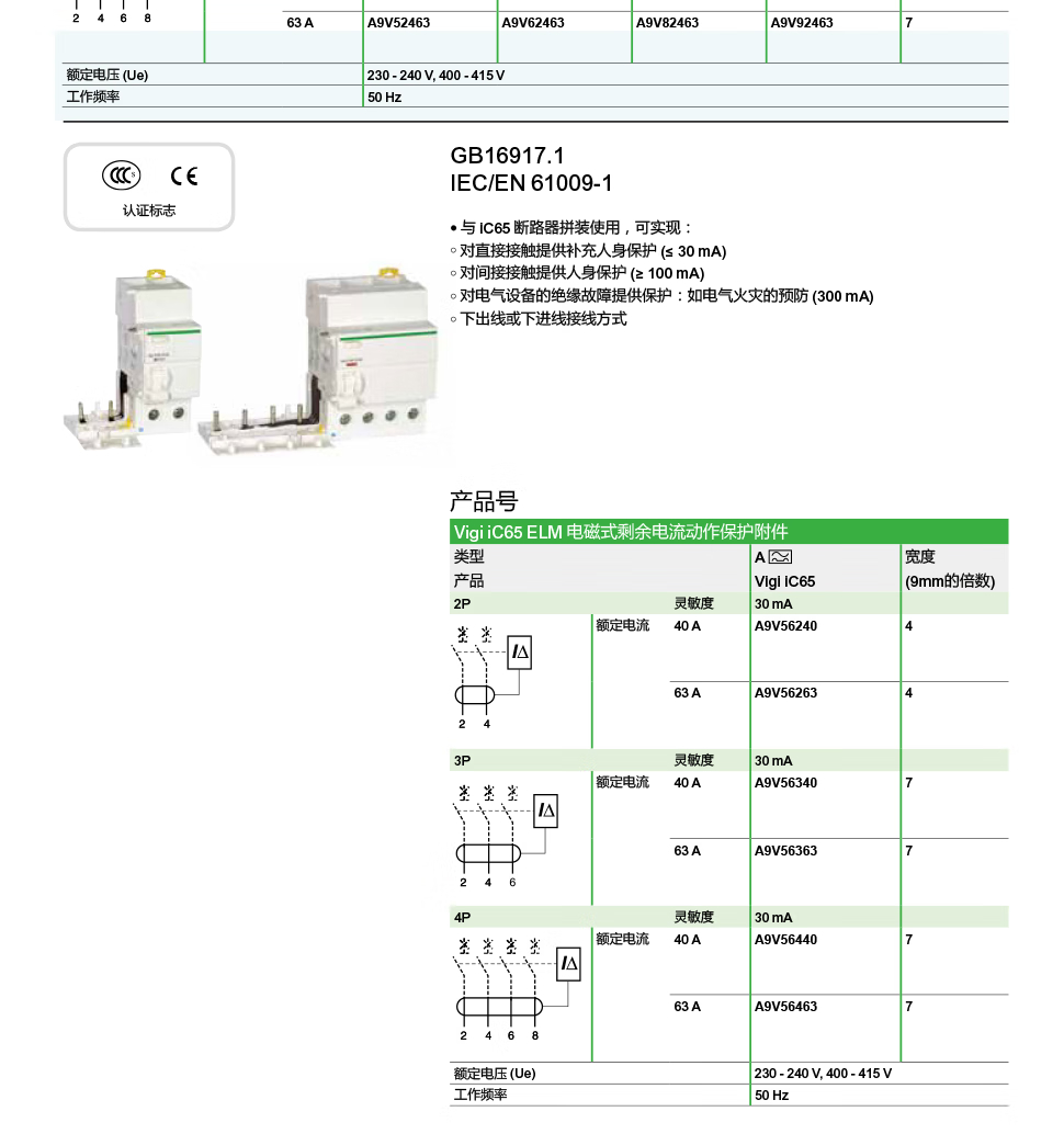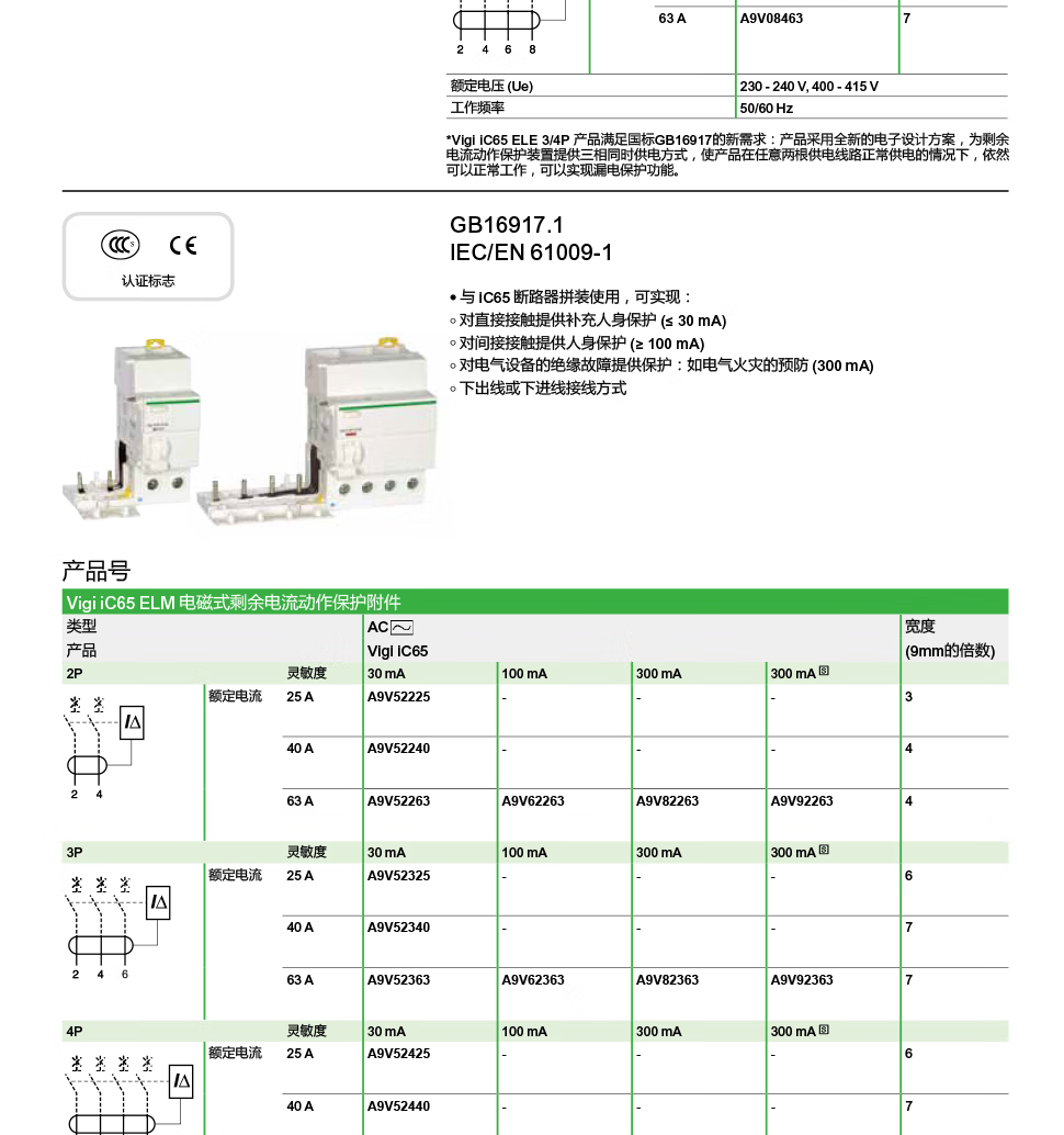施耐德 Vigi iC65 漏电模块 Vigi iC65 ELE 4P 40A 30mA A