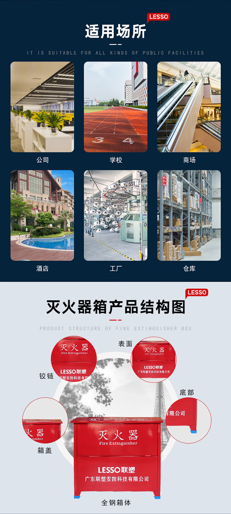 该灭火器箱适用于多种公共场所和工业环境,具体包括: