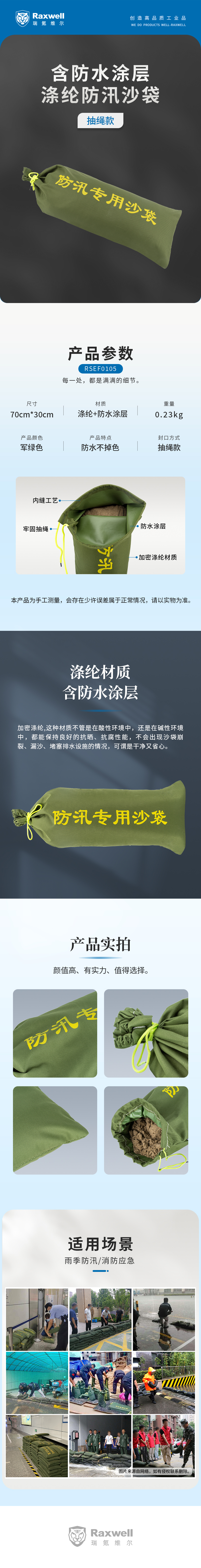 Raxwell(瑞氪维尔) 抽绳款防汛沙袋 RSEF0105 具有以下特点: