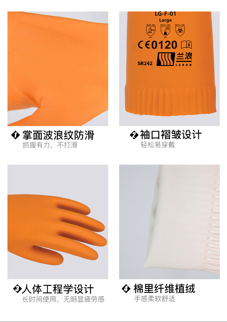 LANON/兰浪 乳胶手套 尺码:9号(L) 杏黄色SR242