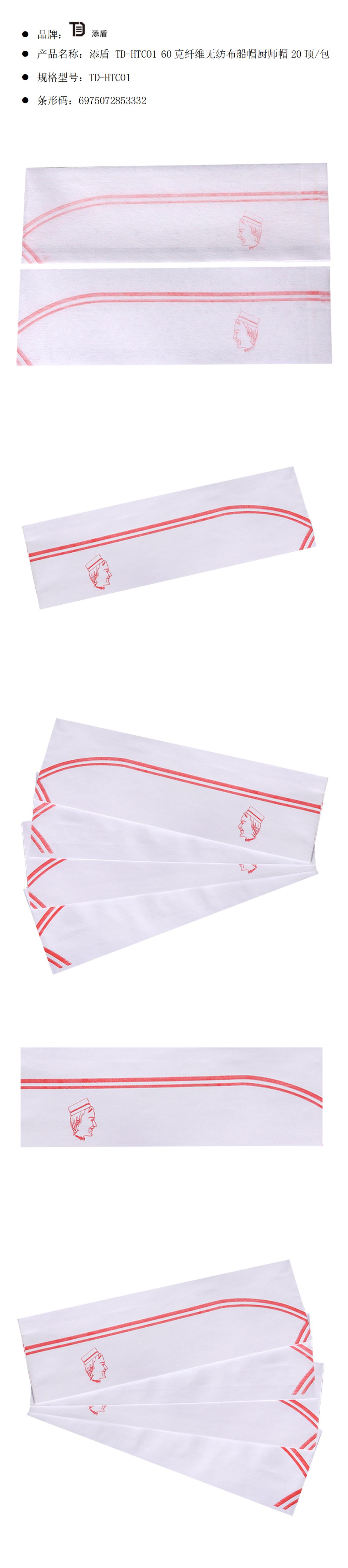 添盾 TD-HTCO1 60克纤维无纺布船帽厨师帽具有以下特点: