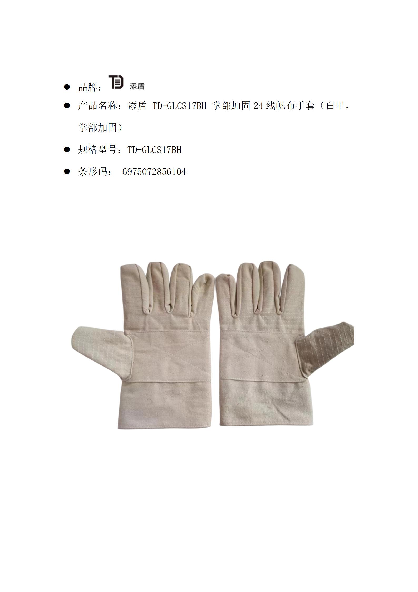 添盾 TD-GLCS17BH 掌部加固24线帆布手套(白甲,掌部加固,10双/包)TD-GLCS17BH