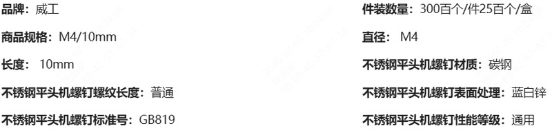 WG(威工) 蓝白锌 十字沉头机螺钉 4x10mm M4*10