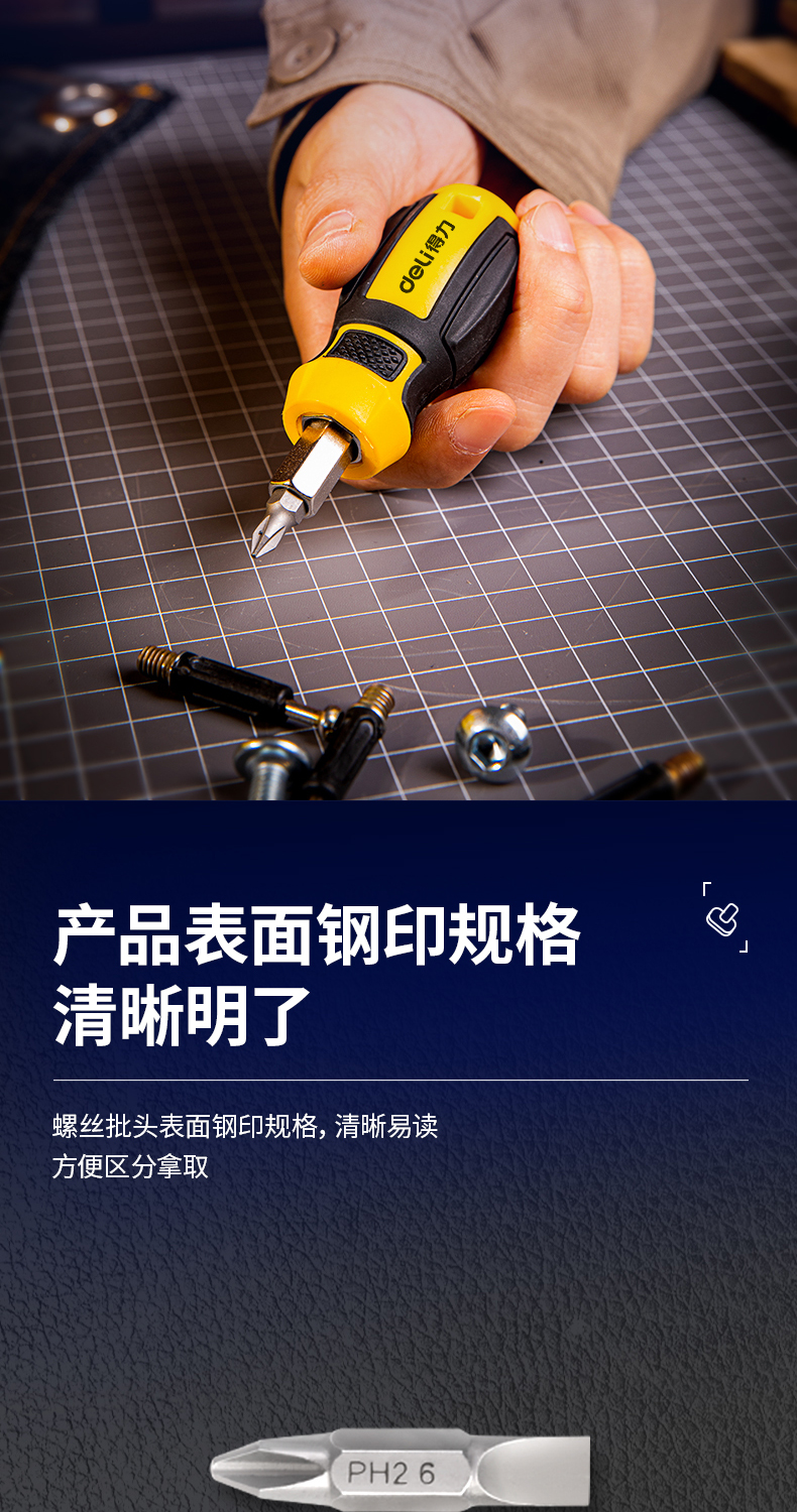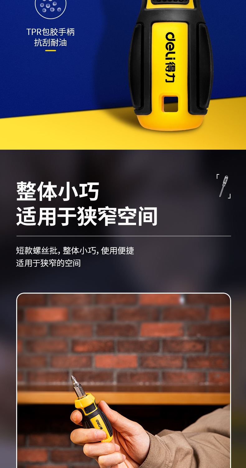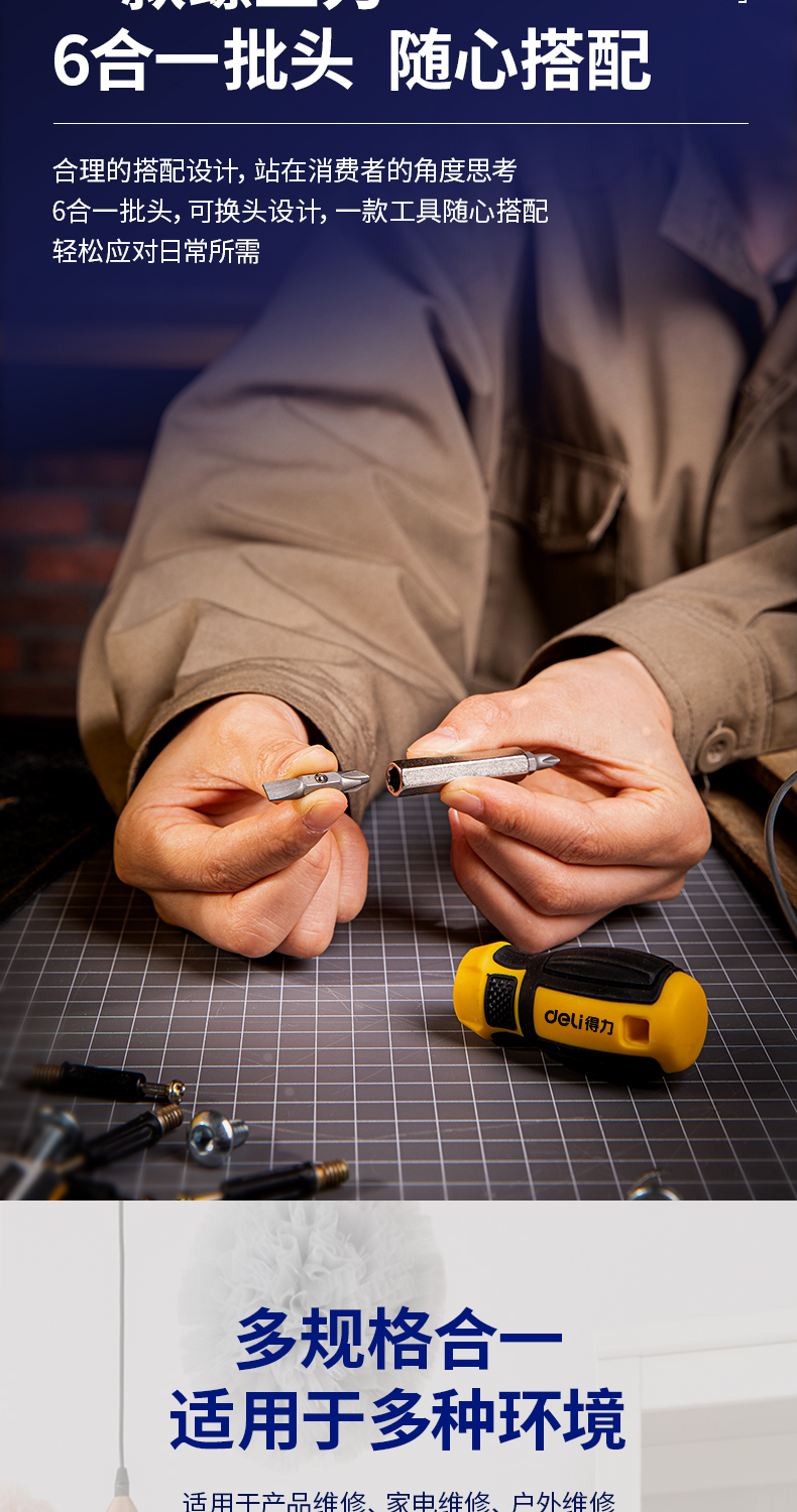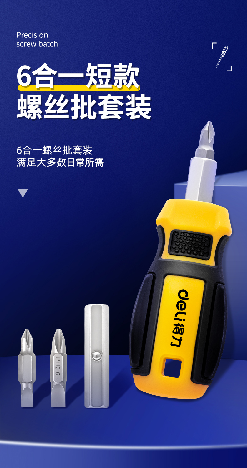 得力(deli) 六合一短款两用螺丝批一字十字螺丝刀多功能螺丝起子家庭维修工具