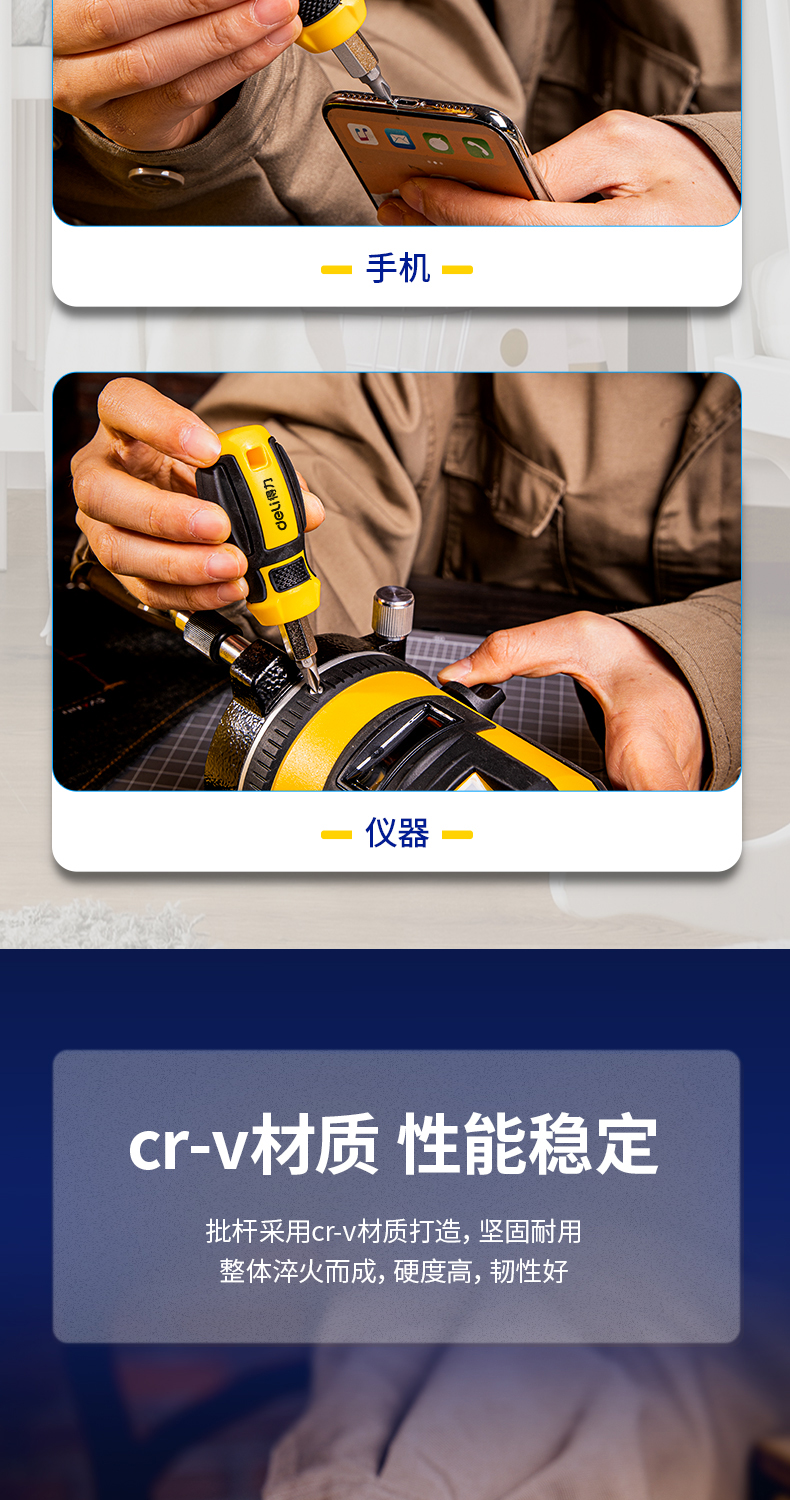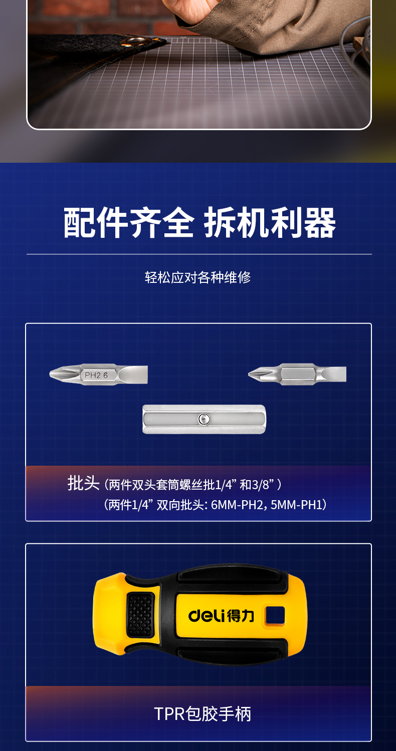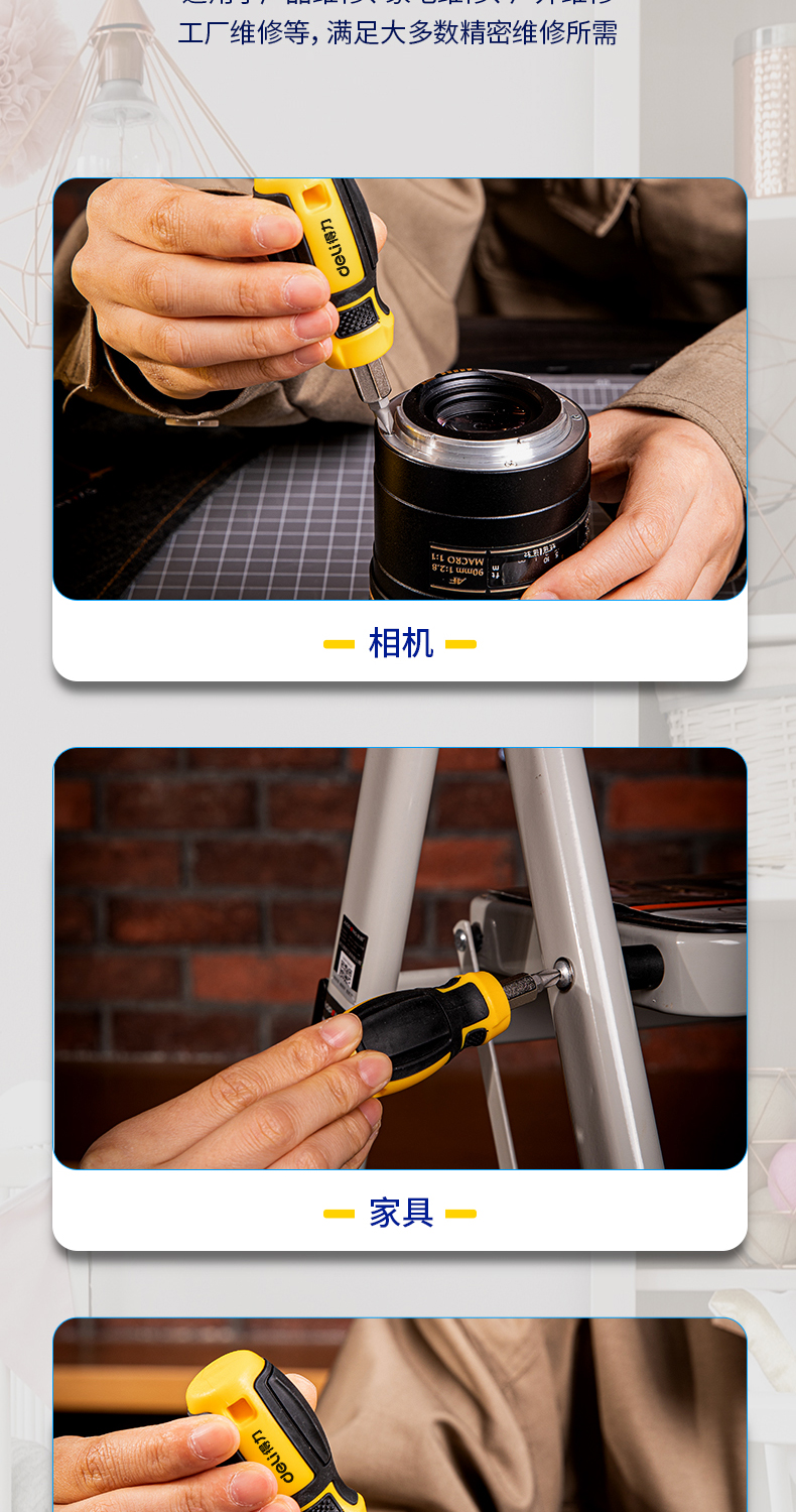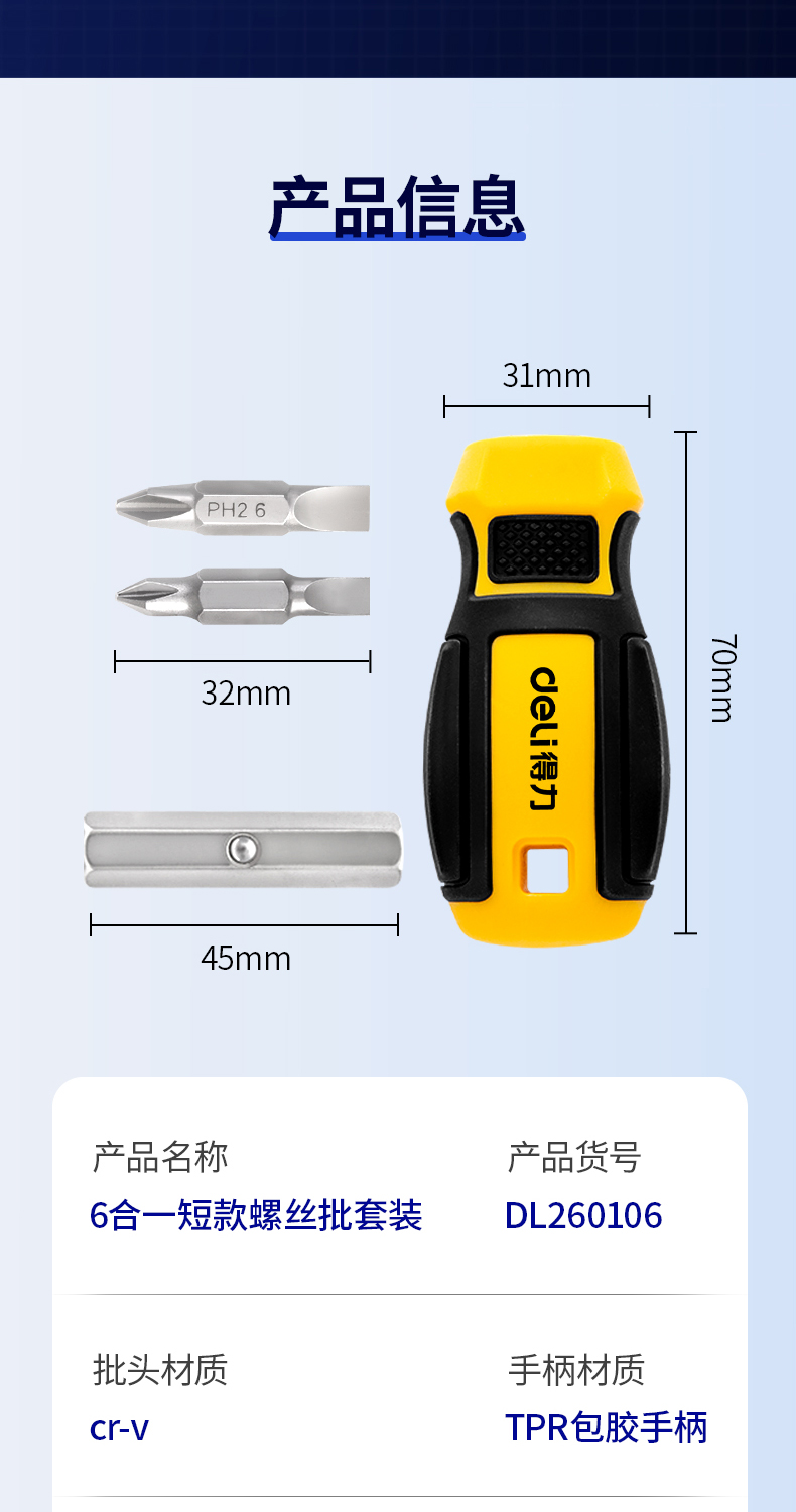 得力(deli) 六合一短款两用螺丝批一字十字螺丝刀多功能螺丝起子家庭维修工具