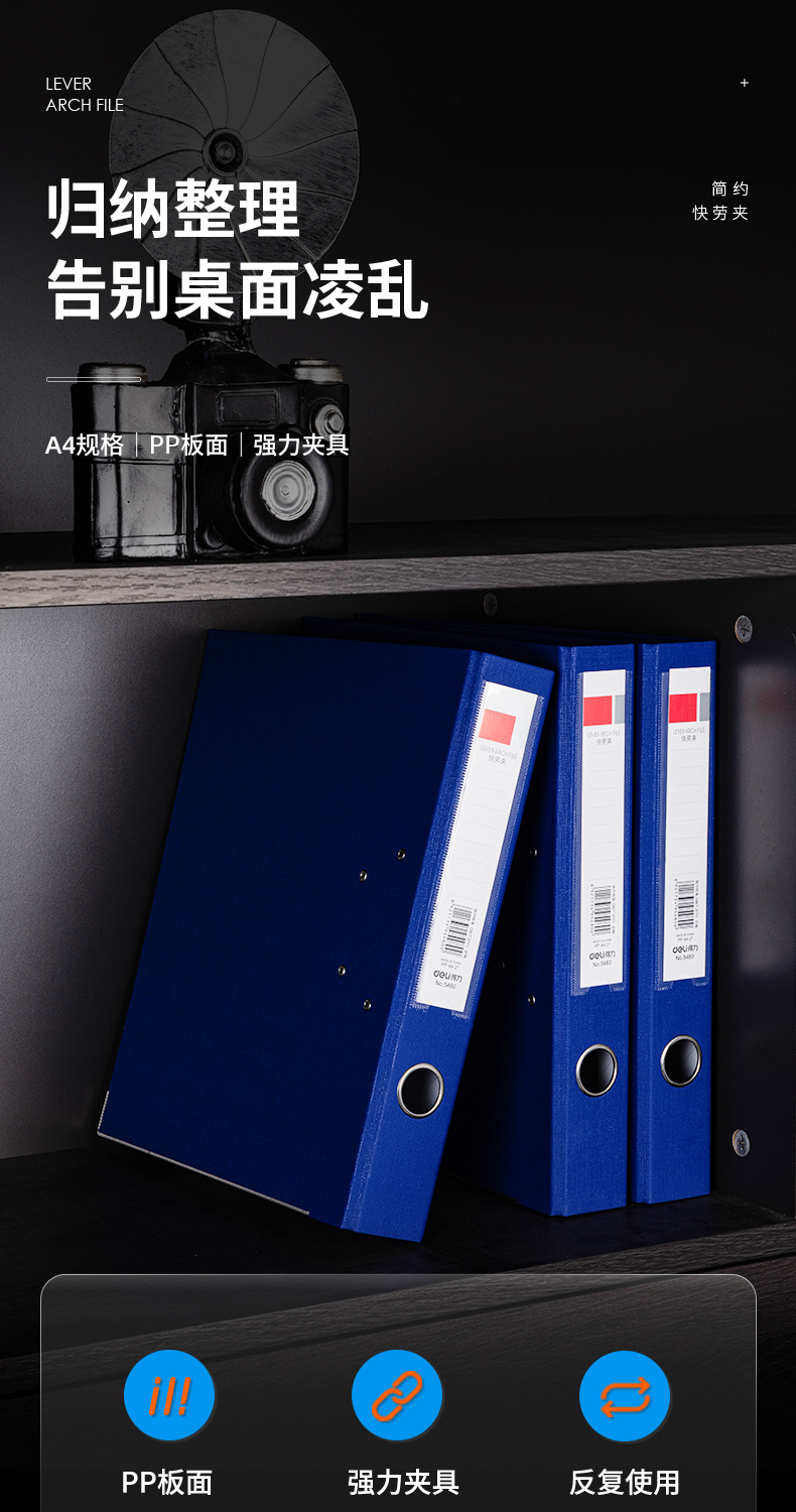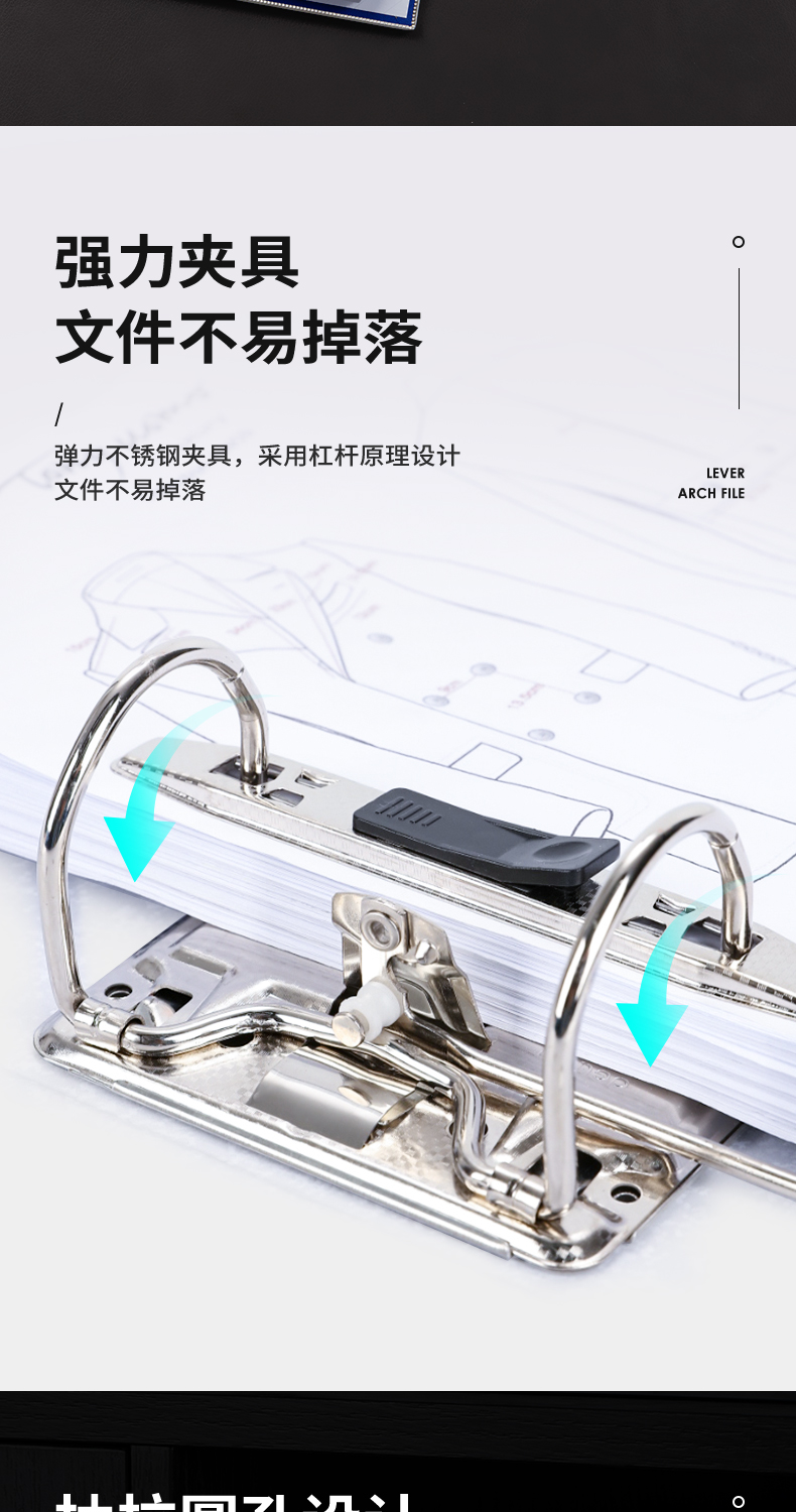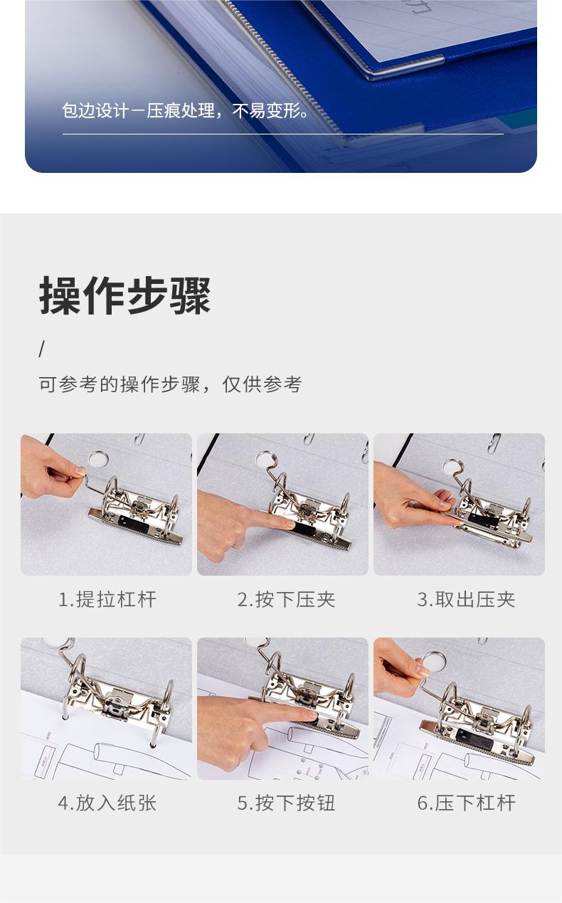 得力5481 加厚型快劳夹 A4两孔文件活页夹打孔夹 办公用品 背宽75mm