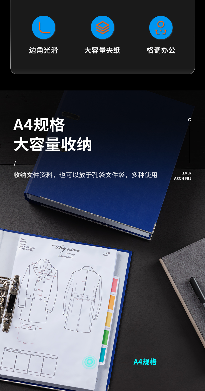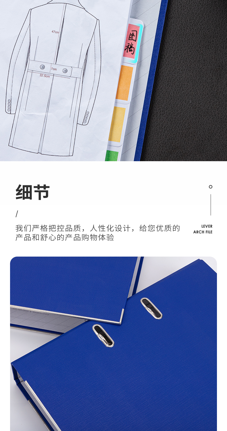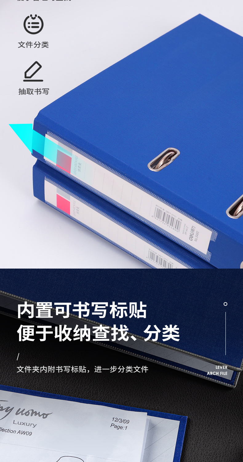 得力5481 加厚型快劳夹 A4两孔文件活页夹打孔夹 办公用品 背宽75mm
