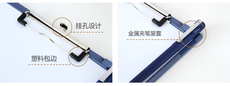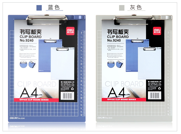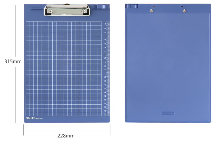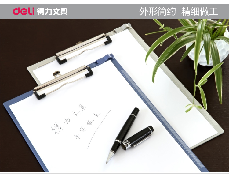 得力9240 A4带刻度金属商务便携强力夹写板夹/写字垫板/试卷资料收纳夹深蓝 办公用品
