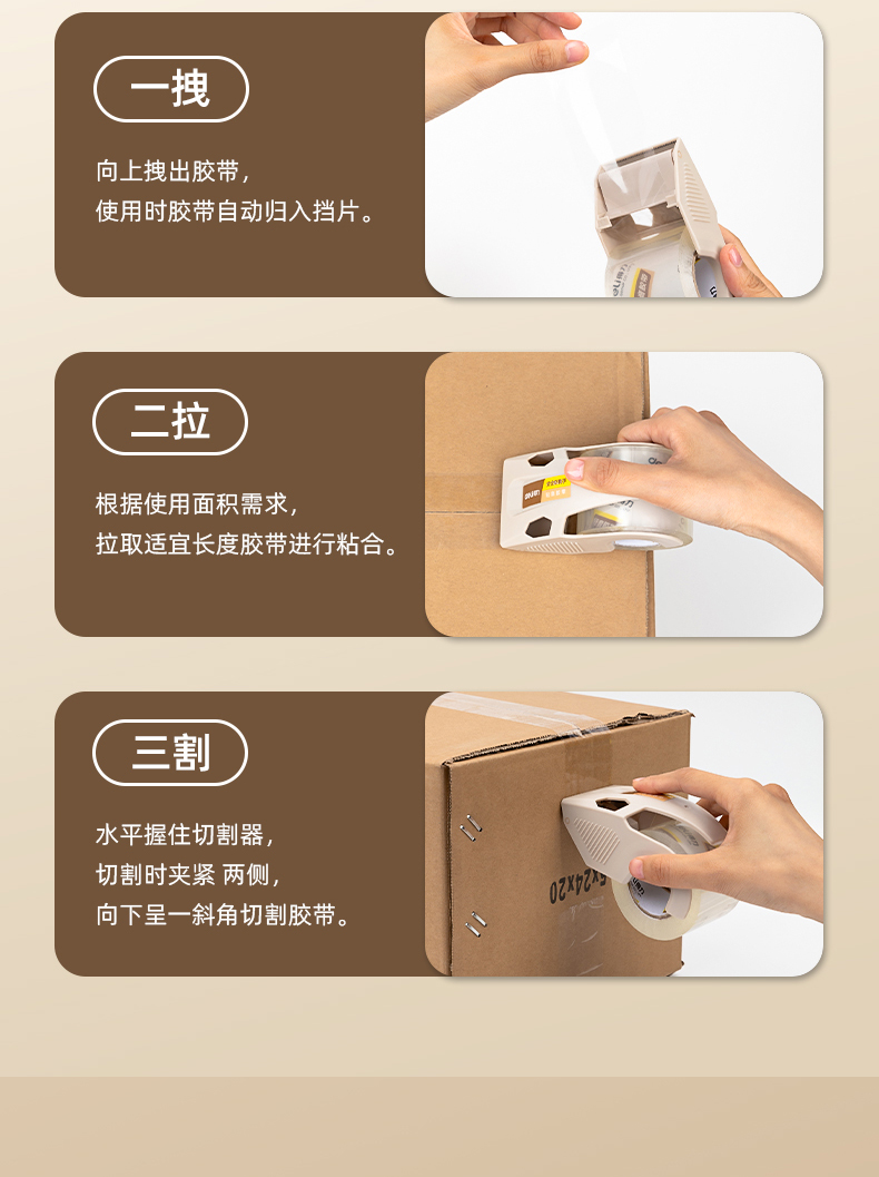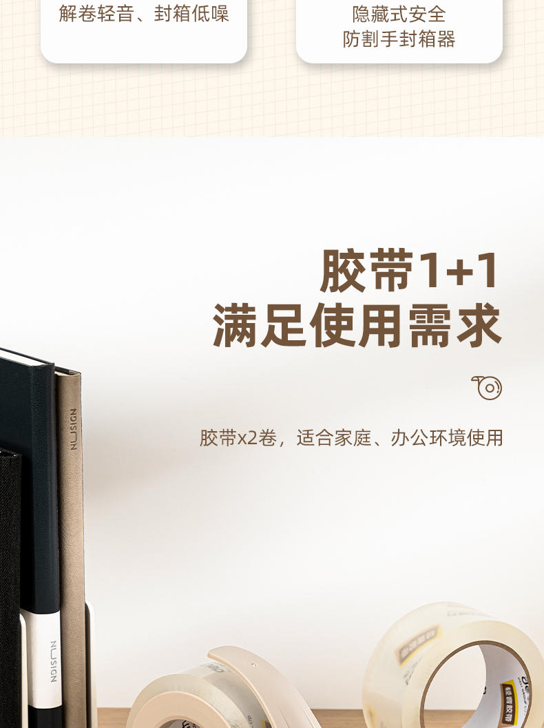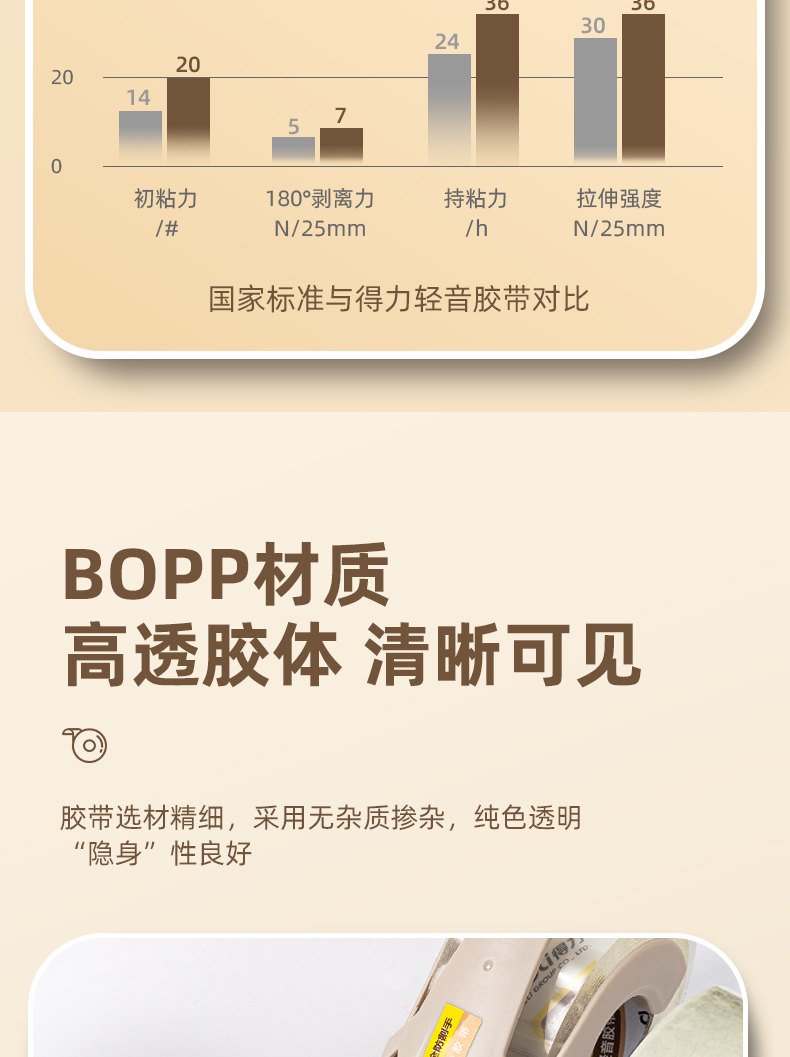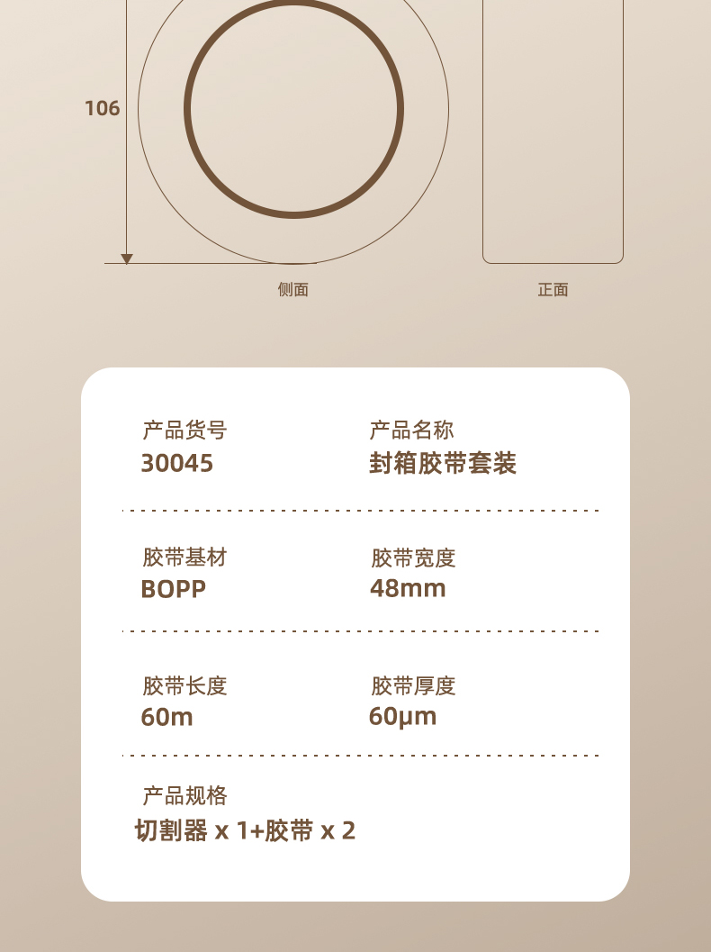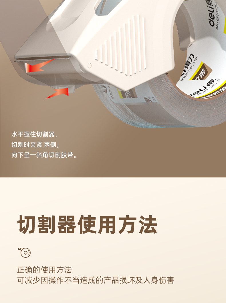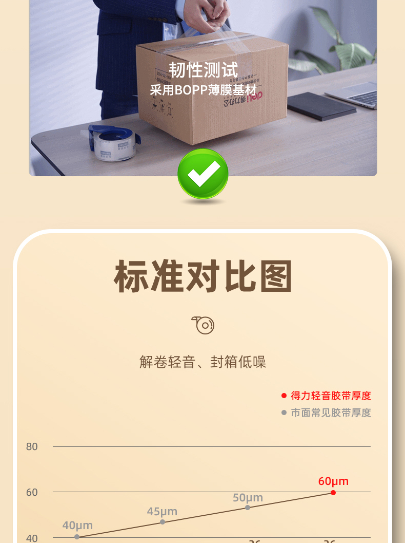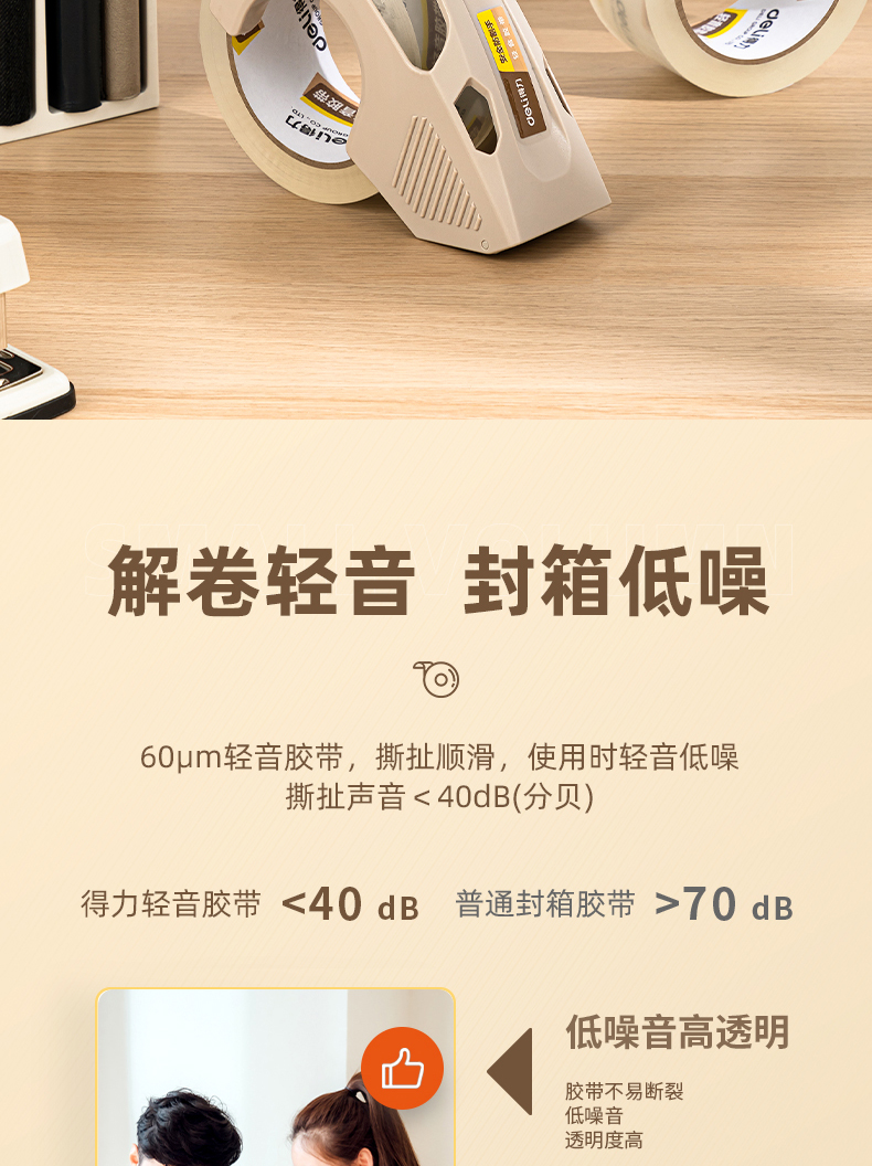 得力30045 封箱胶带/打包胶带/家庭低噪胶带 48mm*60m*60μm 带切割器