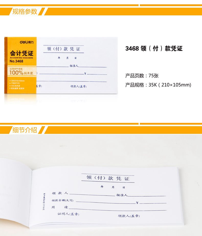 得力3468财会单据凭证票据单据具有以下特点: