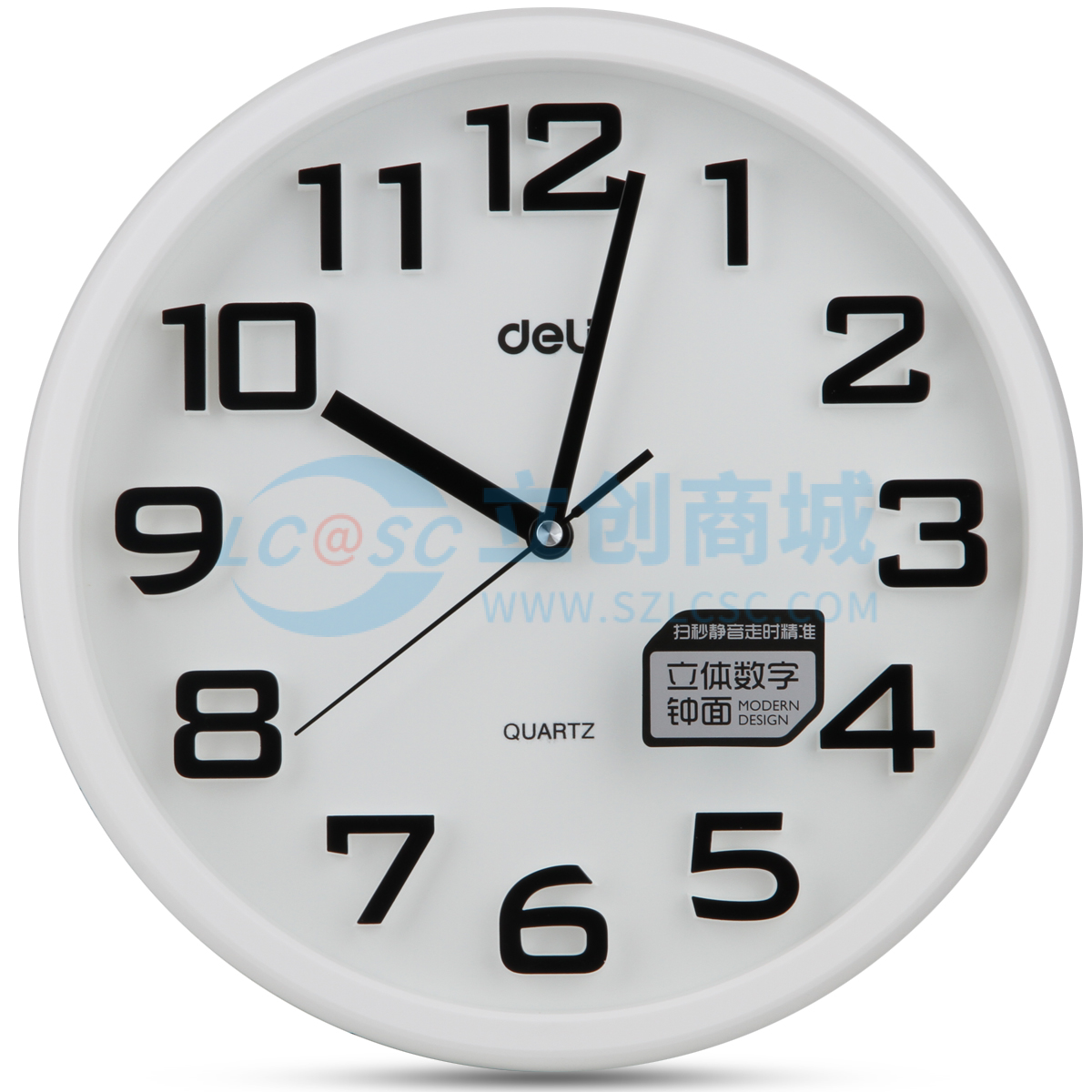 得力8948时尚简约挂钟 客厅办公通用时钟30cm 办公用品(白)(12寸)