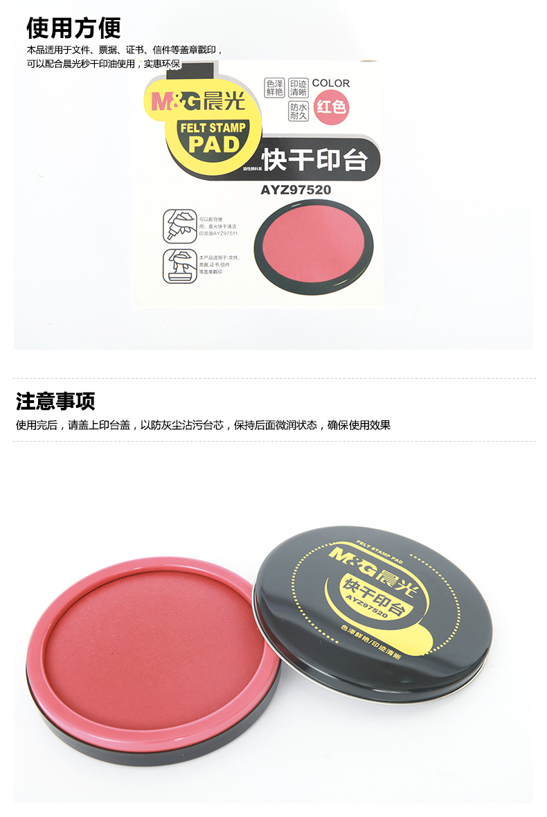 M&G(晨光文具)105mm金属圆盖财务快干印台印泥 办公用品 红色