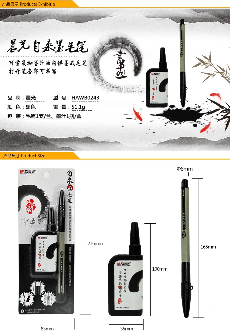 M&G(晨光文具)中小学生自来墨水笔 国风山水画 毛笔+墨