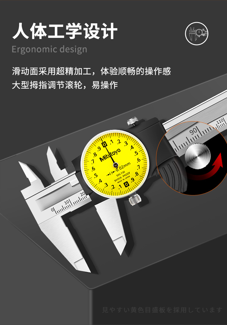 3 **人体工学设计**:滑动面采用超精加工,操作顺畅;大型拇指调节滚轮,易于操作,提高工作效率。