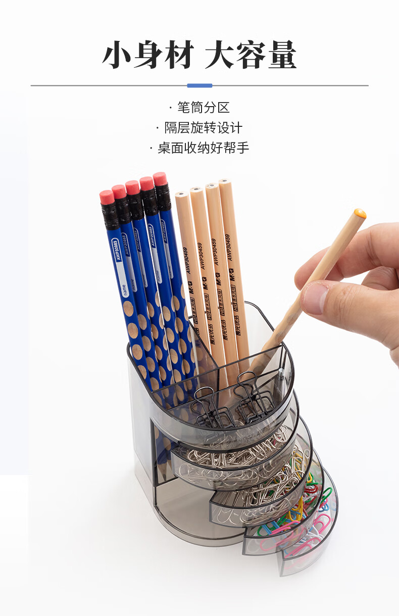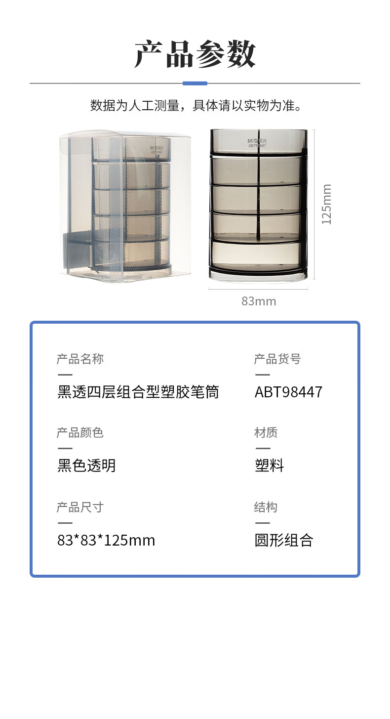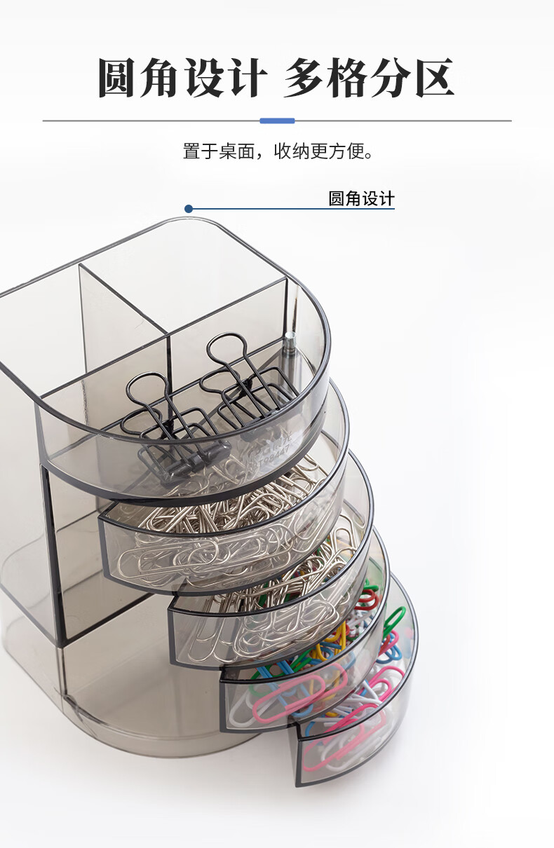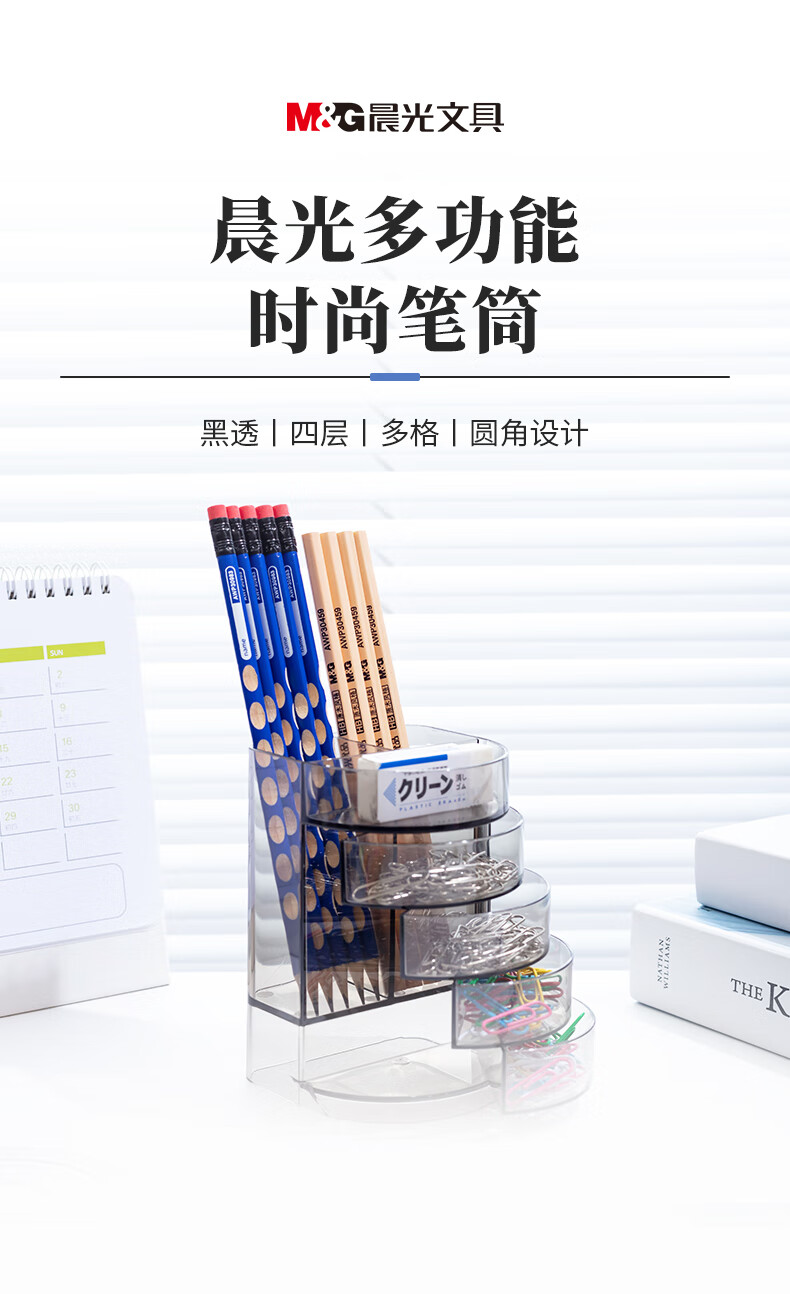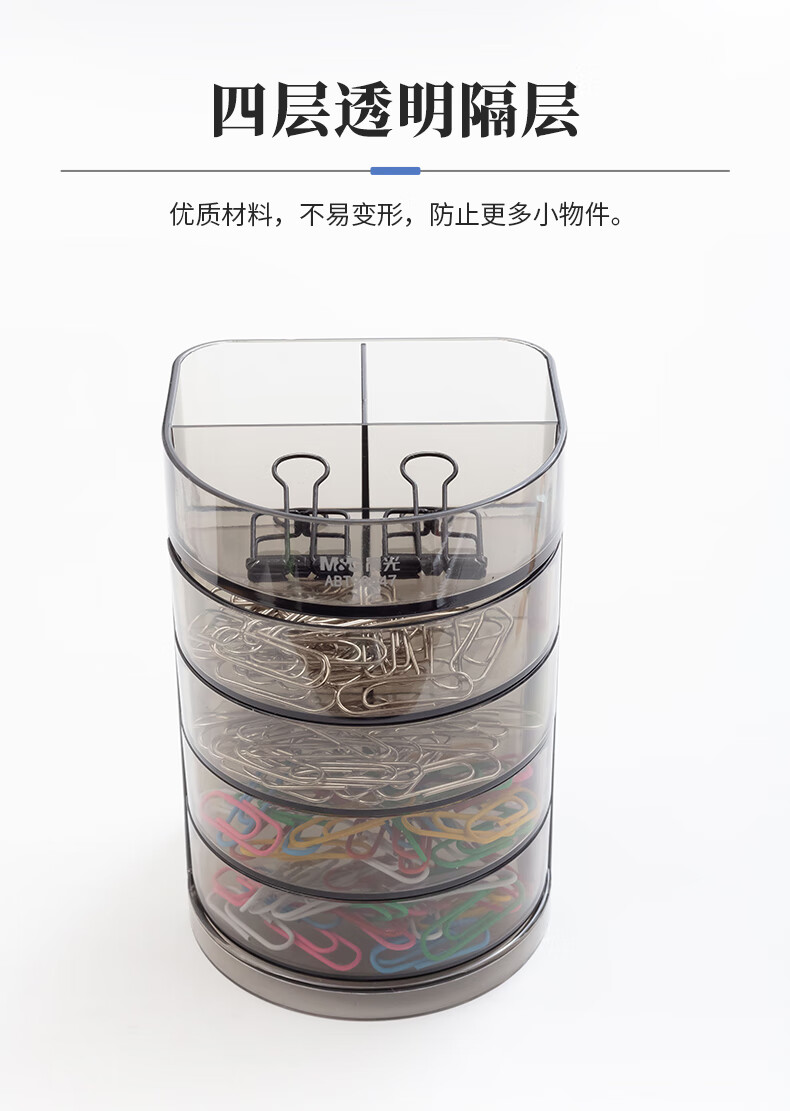 M&G(晨光文具)透明四层时尚笔筒 多功能办公桌面收纳盒 黑色单个装