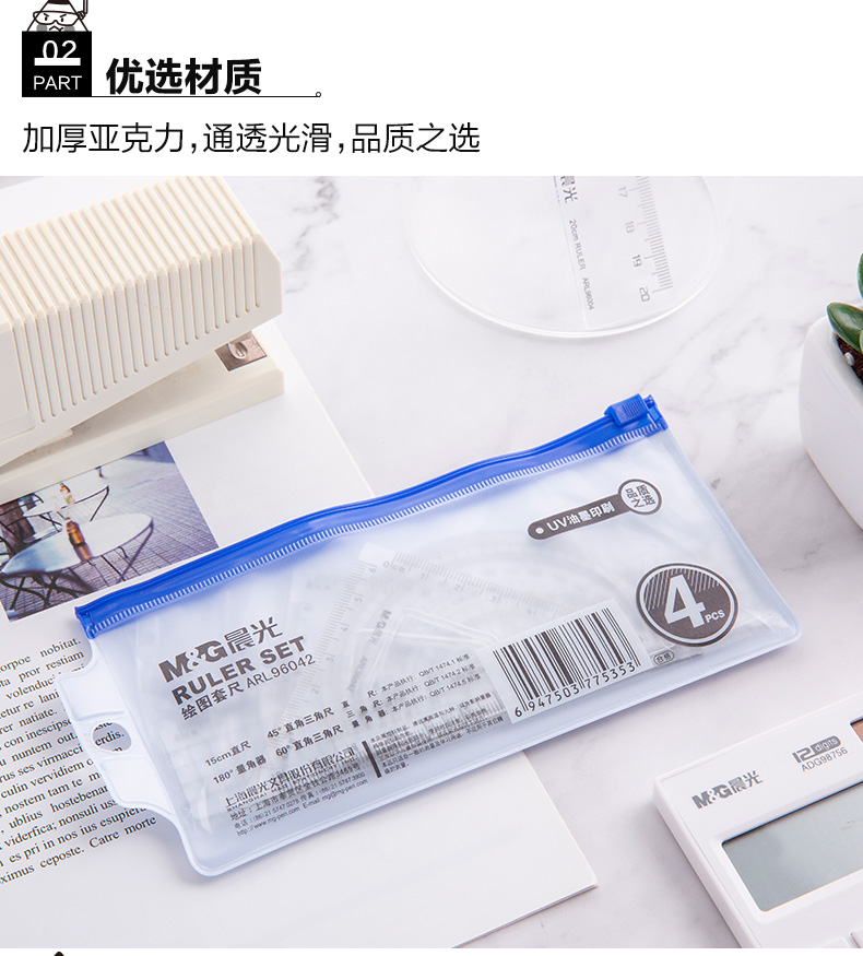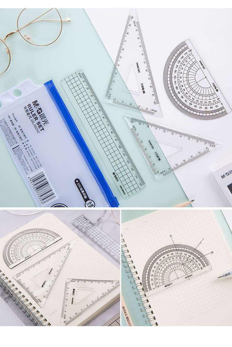 M&G(晨光文具)学生考试绘图套尺 15cm直尺+三角尺*2+量角器 开学文具4件套