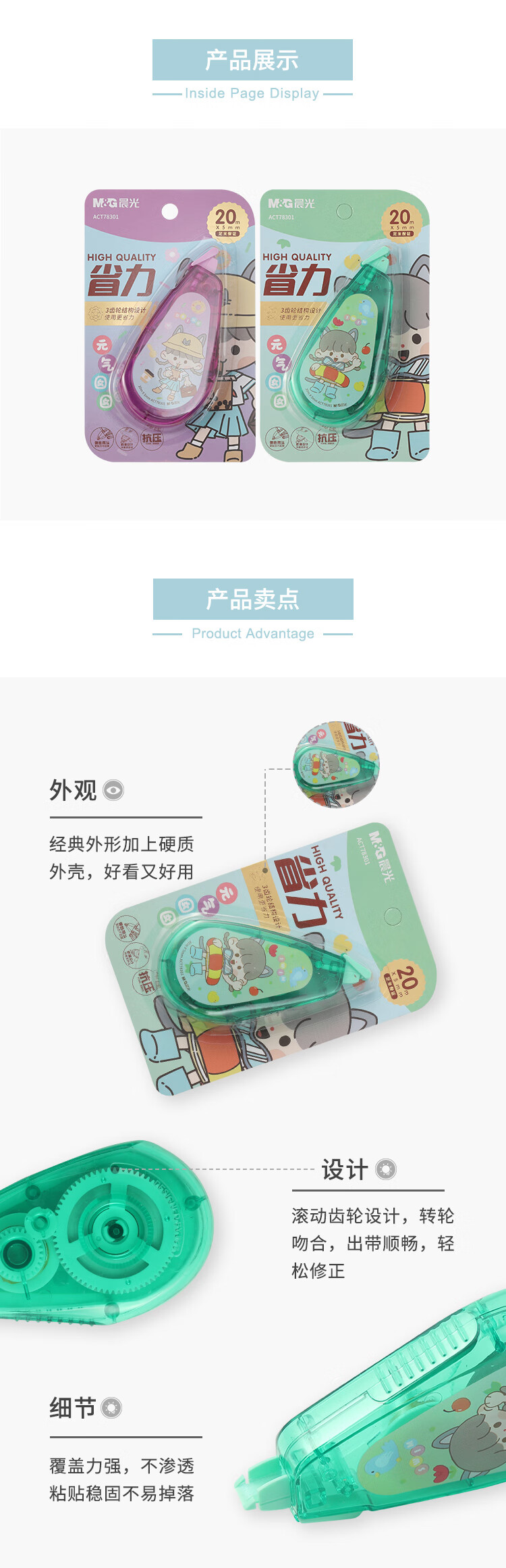 M&G(晨光文具)元气囡囡系列修正带20mx5mm简约改正带中小学生涂改带办公改正带白色