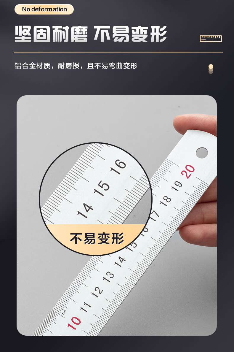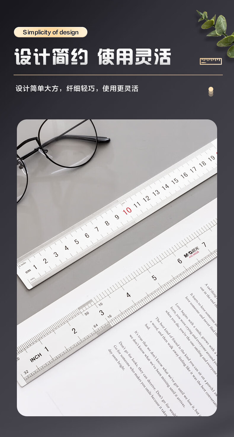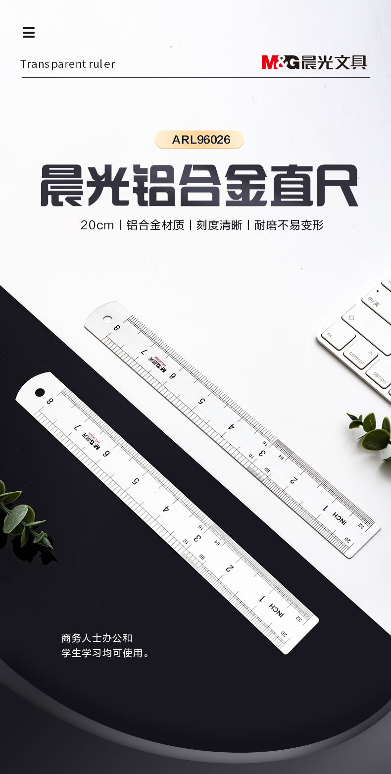 M&G(晨光文具)20cm铝合金直尺 测量绘图刻度尺子 双向刻度尺 办公用品 开学文具