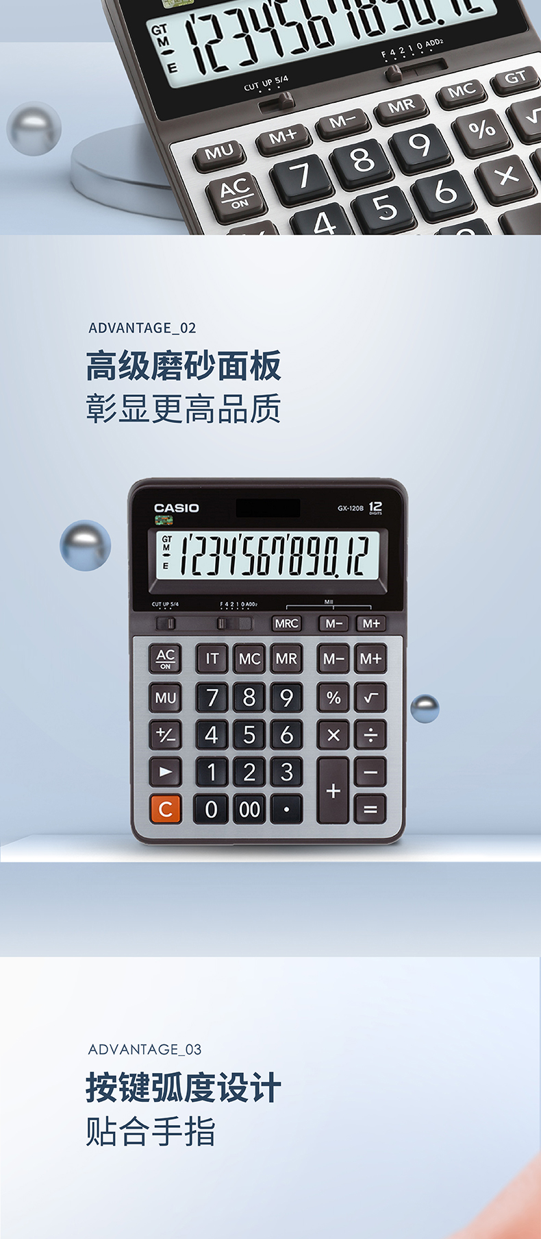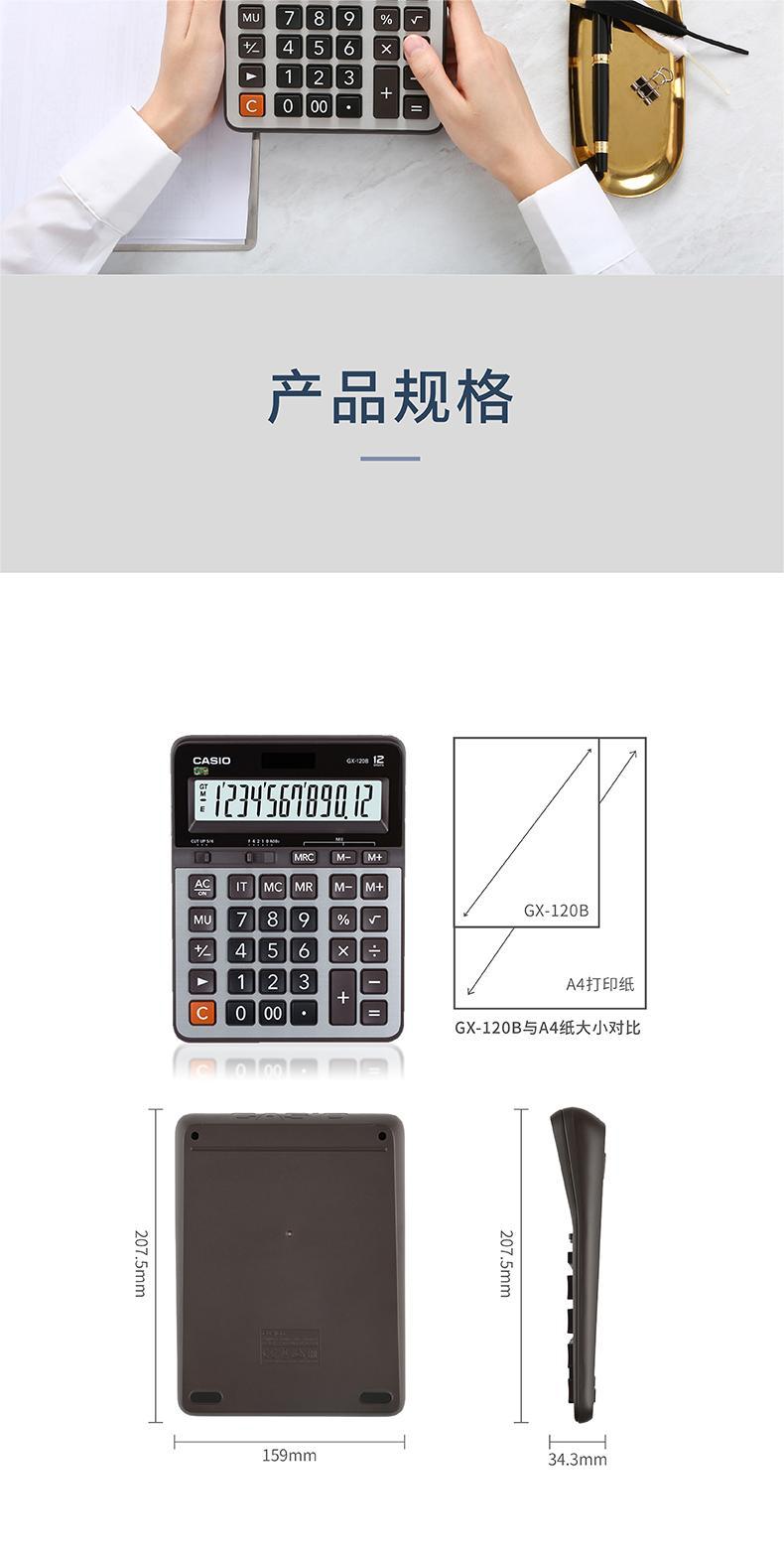 卡西欧(CASIO)GX-120B 商务计算器 超大型机 办公用品 灰色