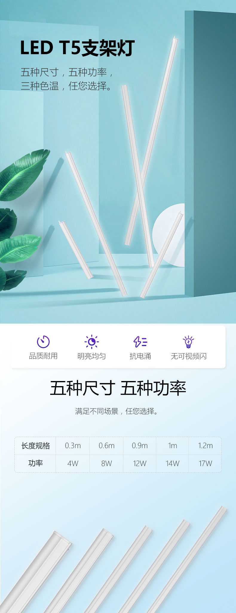 公牛T5支架灯*12W*14W(1米)