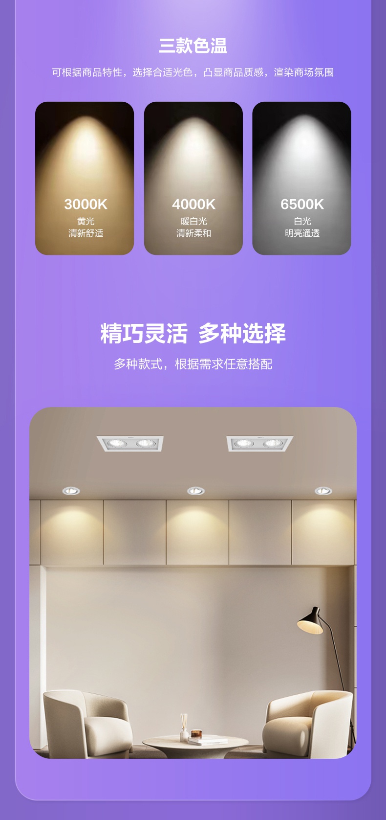 灵活安装:导轨式安装方式,适配商业、办公等场景的轨道系统,安装便捷且位置可调