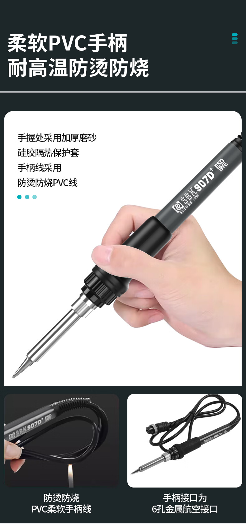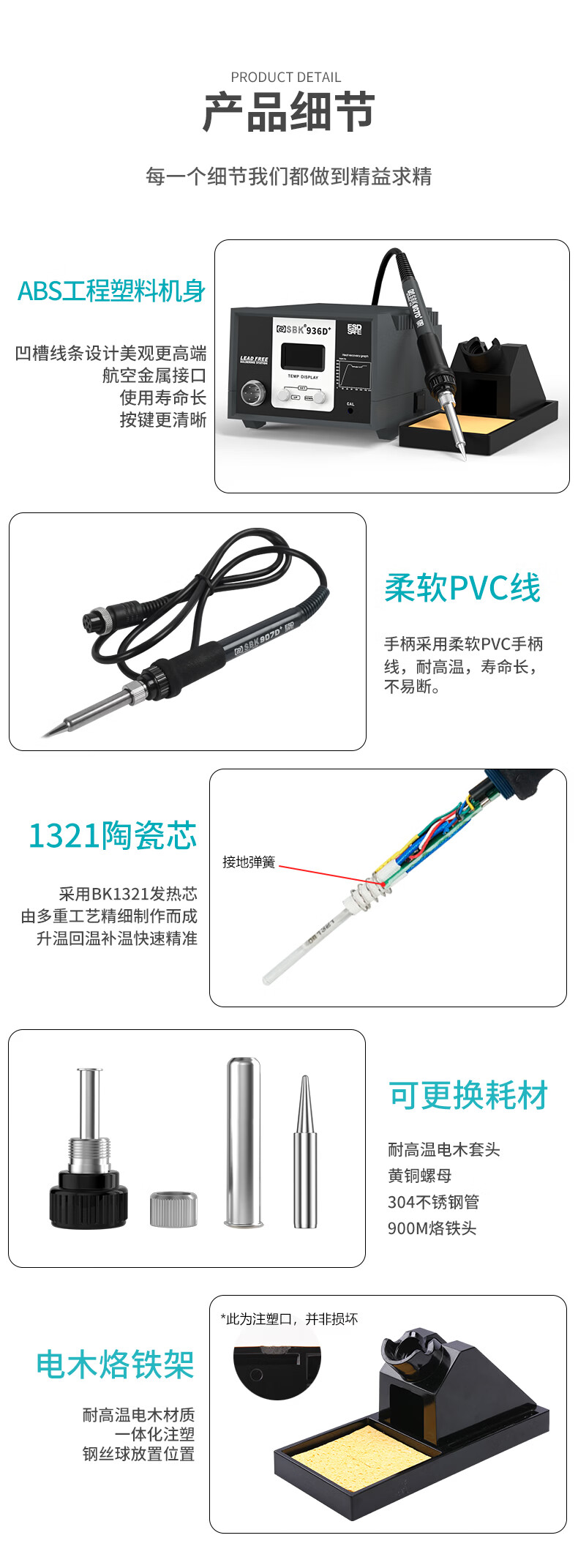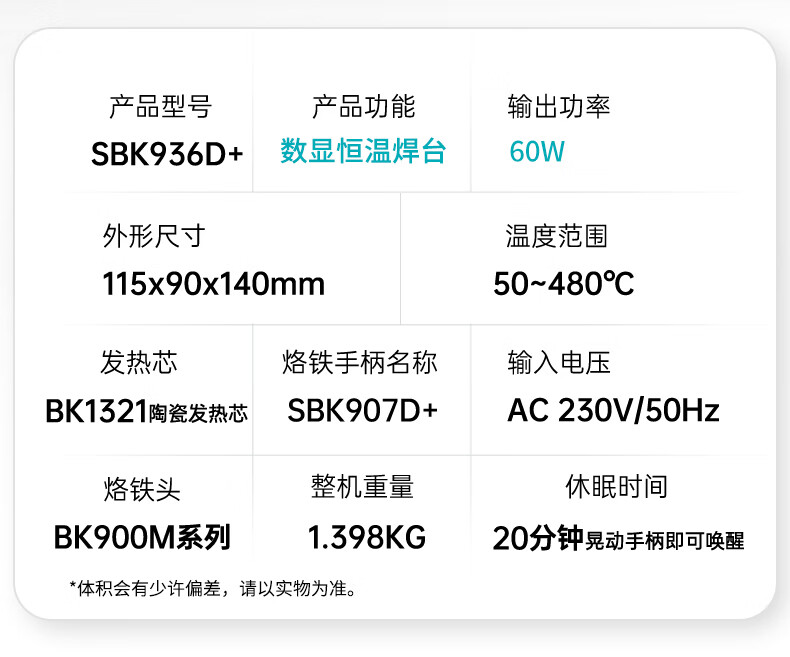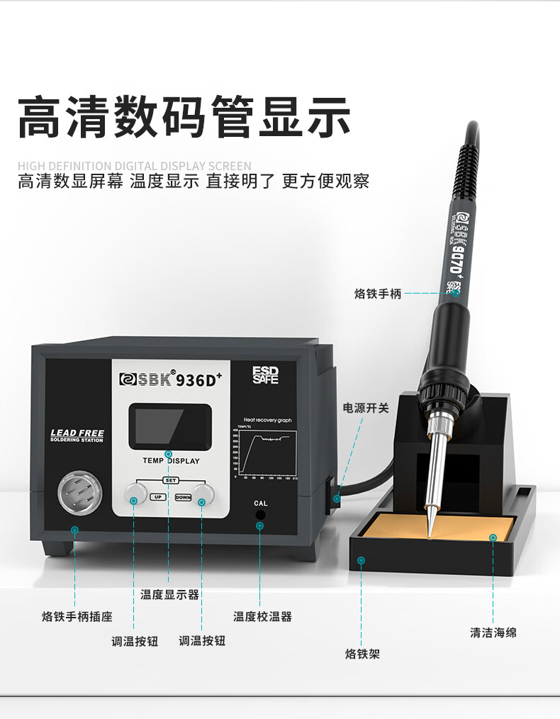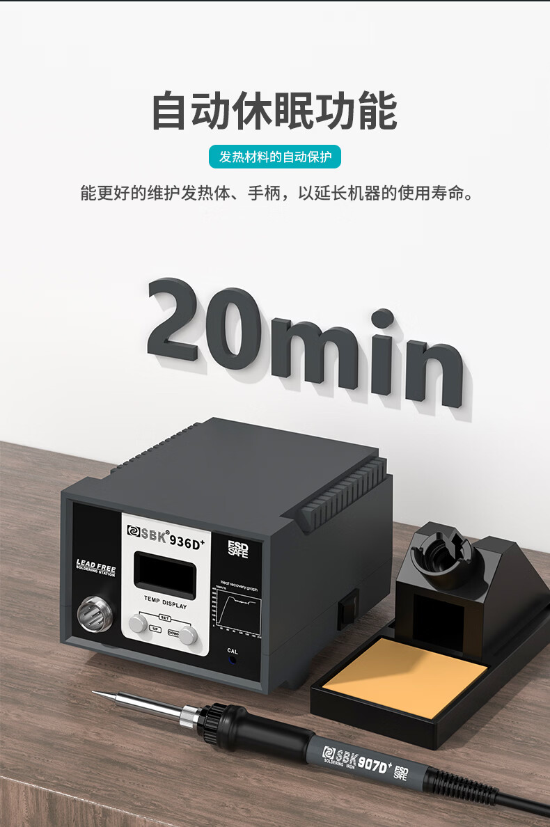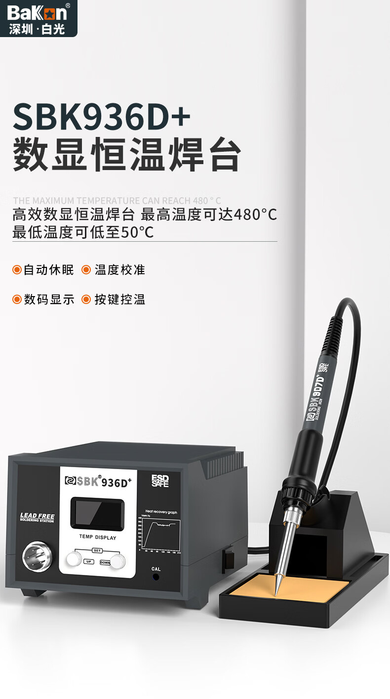 Bakon(深圳白光),60W电烙铁套装可调温恒温焊台自动休眠电烙铁焊锡烙铁,SBK936D(标配K嘴)