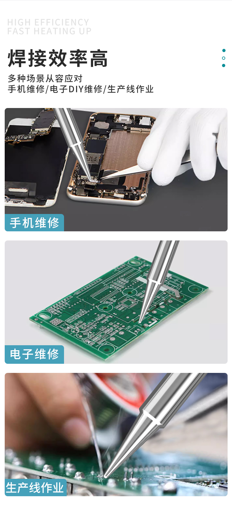 电子元器件焊接:适合各种电子元器件的焊接作业,如电阻、电容、IC芯片等,大小焊点通吃,满足不同焊接需求。