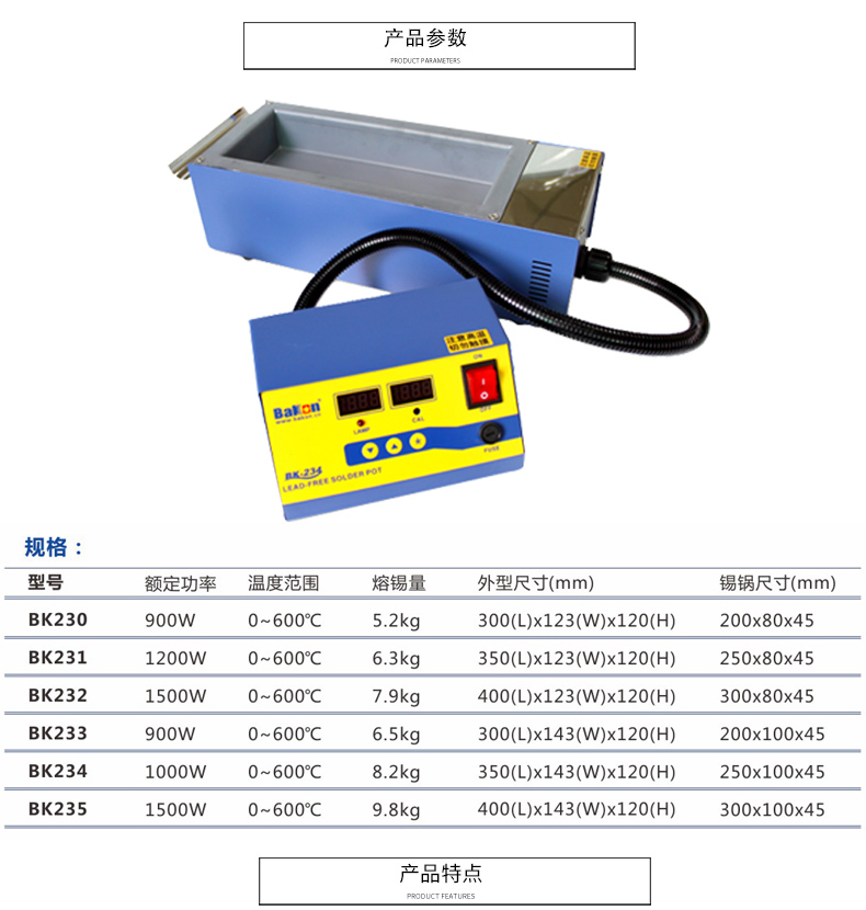 Bakon(深圳白光)BK230白光双数显高温无铅工业级分体无铅锡炉