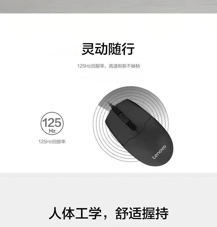 联想(Lenovo)M180 原装有线USB鼠标 笔记本台式一体机家用办公商务鼠标 三挡调节 黑色