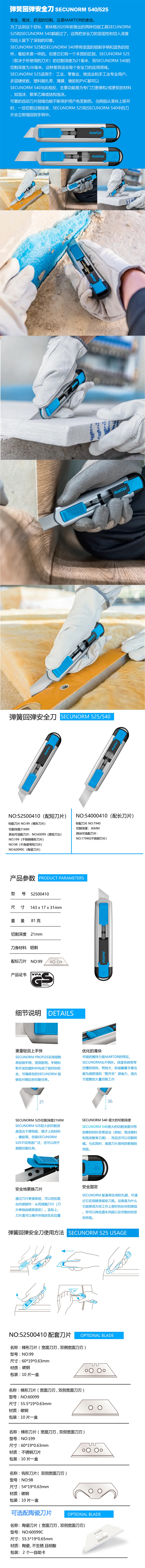 品牌为MARTOR(马特),型号52500410,属于SECUNORM 525系列弹簧回弹安全刀
