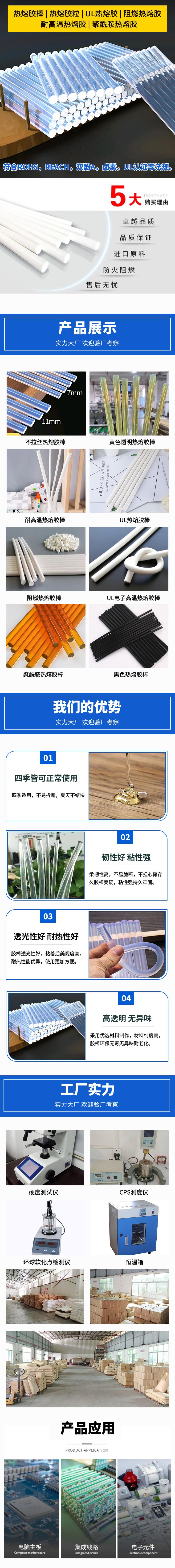 透光性好:胶棒透光性好,粘着后美观度高,适用于精密电子元件的粘接。