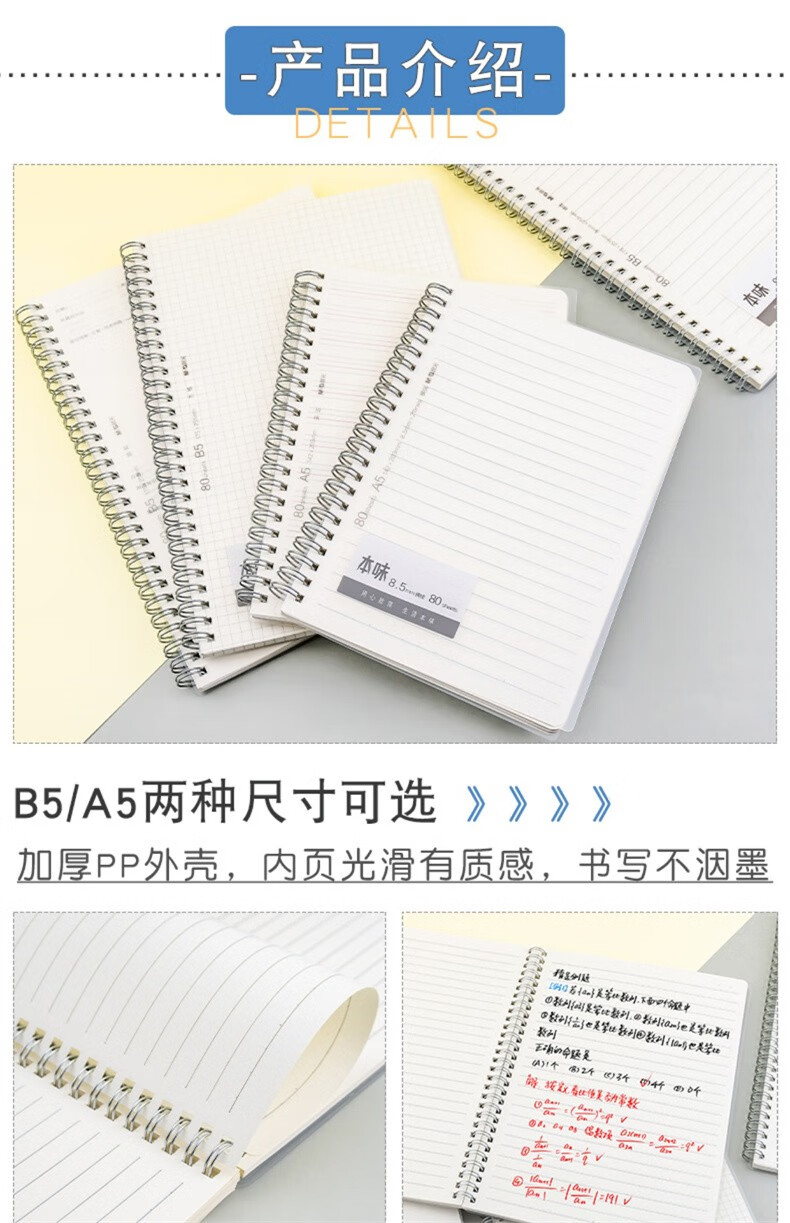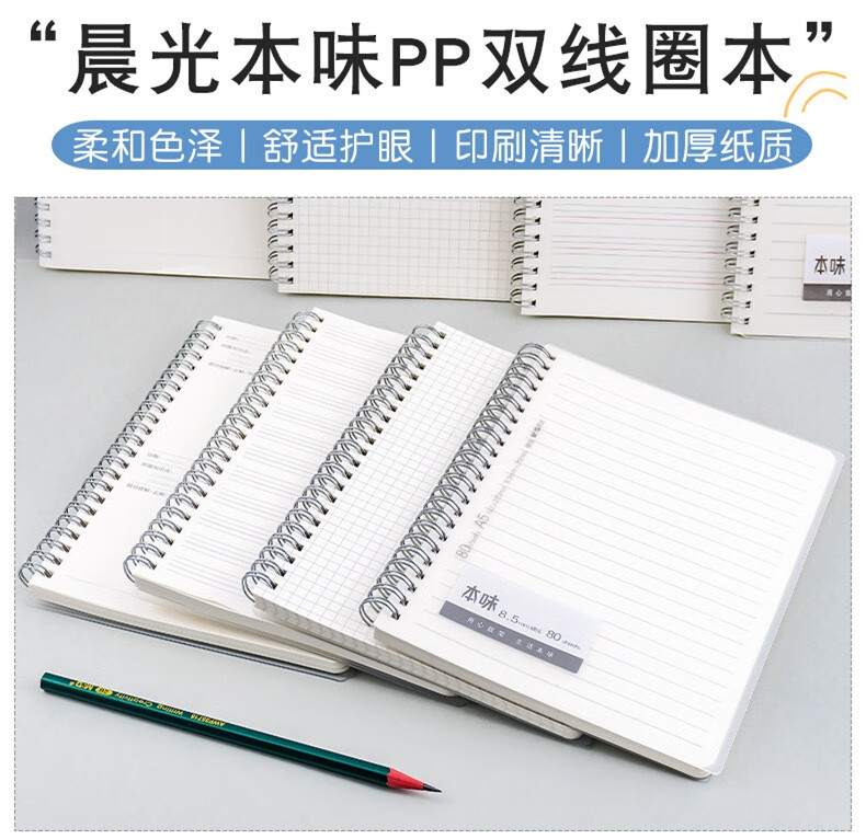 晨光本味PP双线圈本采用金属双线圈装订设计,开合顺畅,翻页自如,书写时页面可完全摊平,避免折角或遮挡内容。