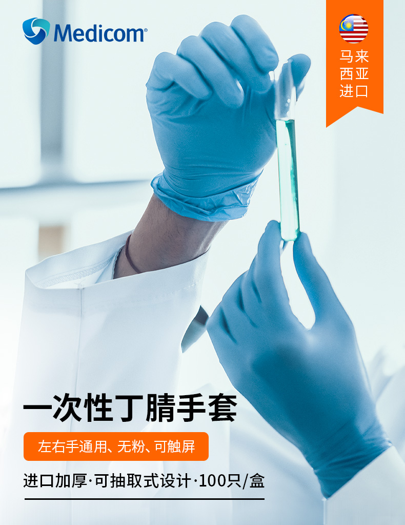 [1整盒100只]Medicom(麦迪康)轻柔型丁腈手套 无粉 蓝色小号 1191B