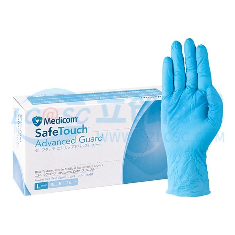 [1整盒100只]Medicom(麦迪康)加强型丁腈手套 防滑加厚无粉 橡胶检查手套 大号 蓝色1136D