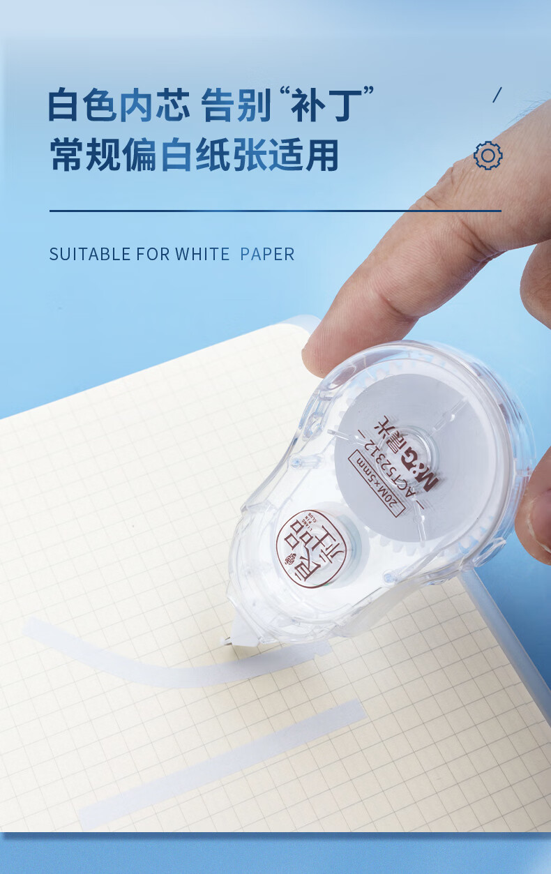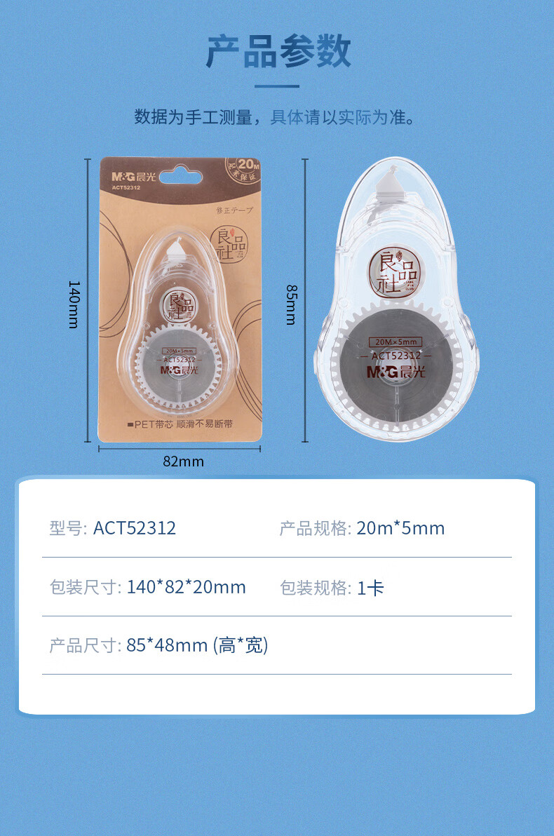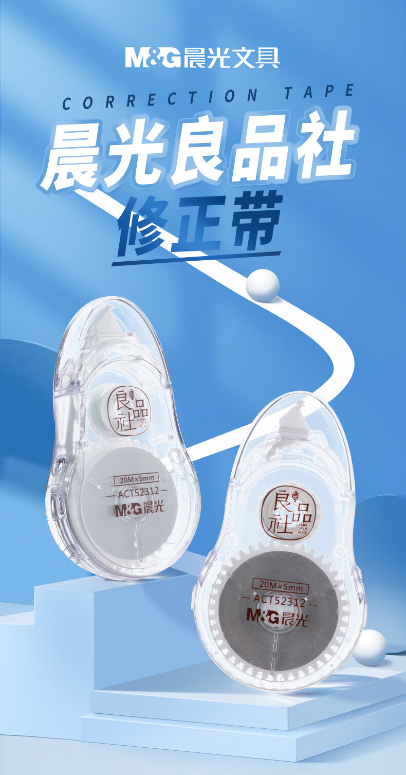 M&G(晨光文具)20m*5mm/PET带芯修正带 学生大容量涂改带 良品社系列改正带白色