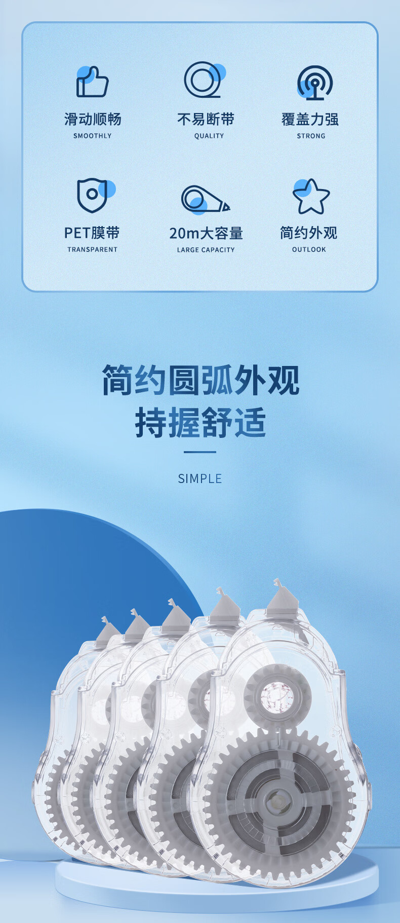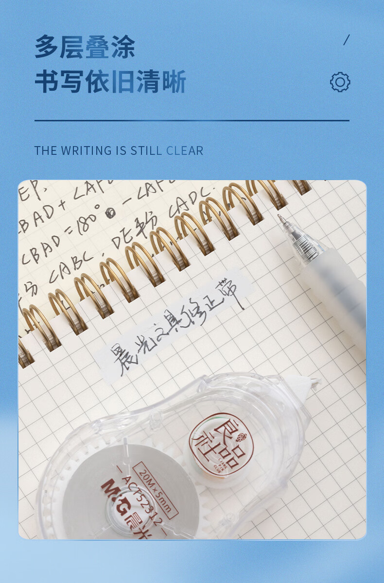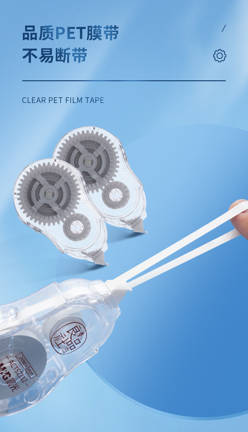 本款M&G晨光文具ACT52312修正带采用高品质PET膜带材质,具有顺滑不卡带、不易断裂的优异性能,确保长时间使用依然稳定可靠。