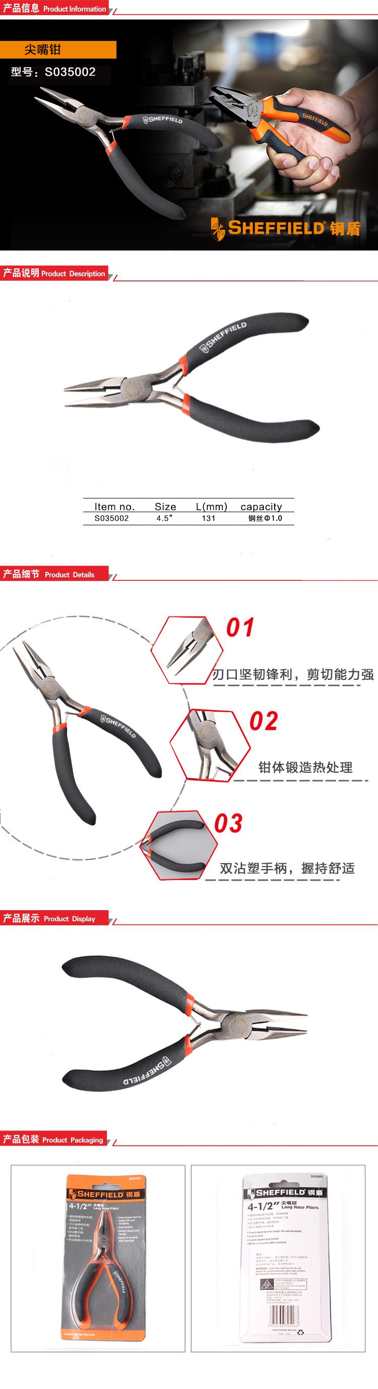 SHEFFIELD(钢盾),尖嘴钳4.5"(麻柄),S035002