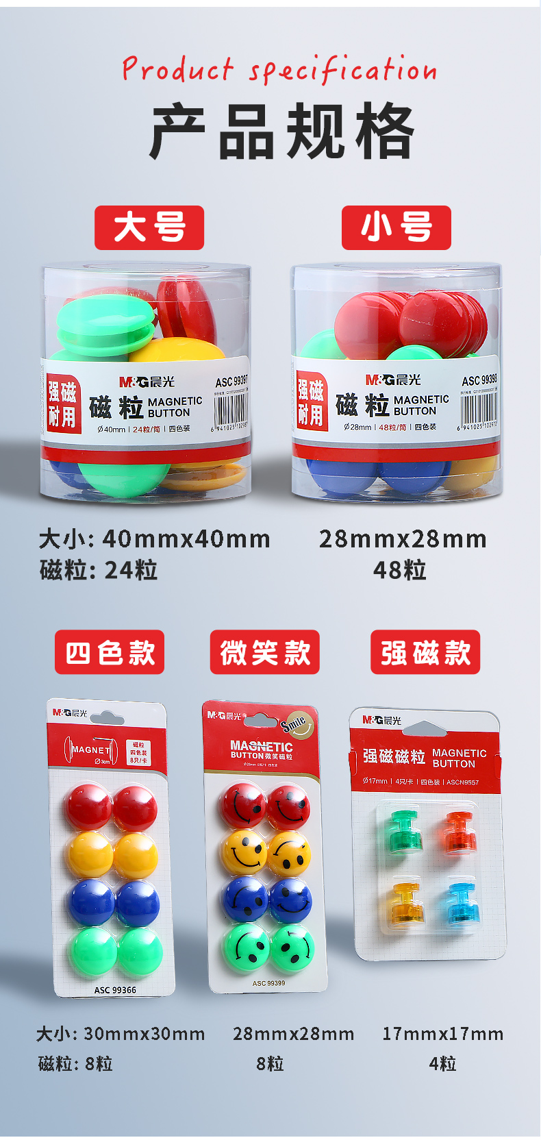 M&G(晨光文具)强磁粒 会议白板专用磁扣 办公教学写字板磁钉 彩色磁贴吸铁石