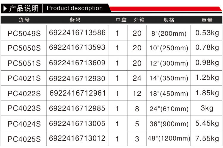 卡夫威尔,普通管子钳,12"(300MM),PC5051S