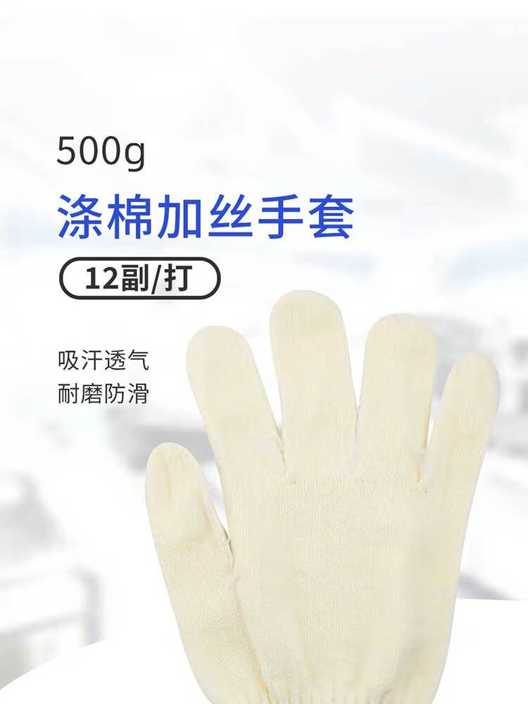 [一包12副]10针本白涤棉加丝纱线手套 500g