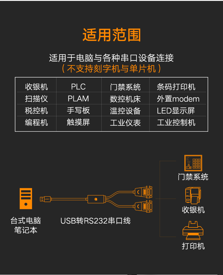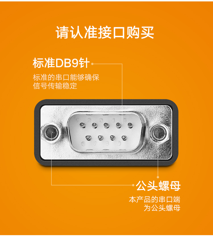 请确认目标设备是否具备标准DB9公头串口,本产品为公对公连接线,若设备为母口则需配合转换头使用。