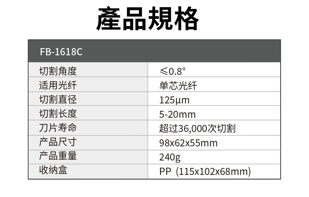 宝工FB-1618C精密光纤切割刀采用高精度铝合金刀架结构,确保切割稳定性与长期使用不变形。其平均切割角度≤0.8°,可实现超平整端面切割,有效提升光纤熔接质量。