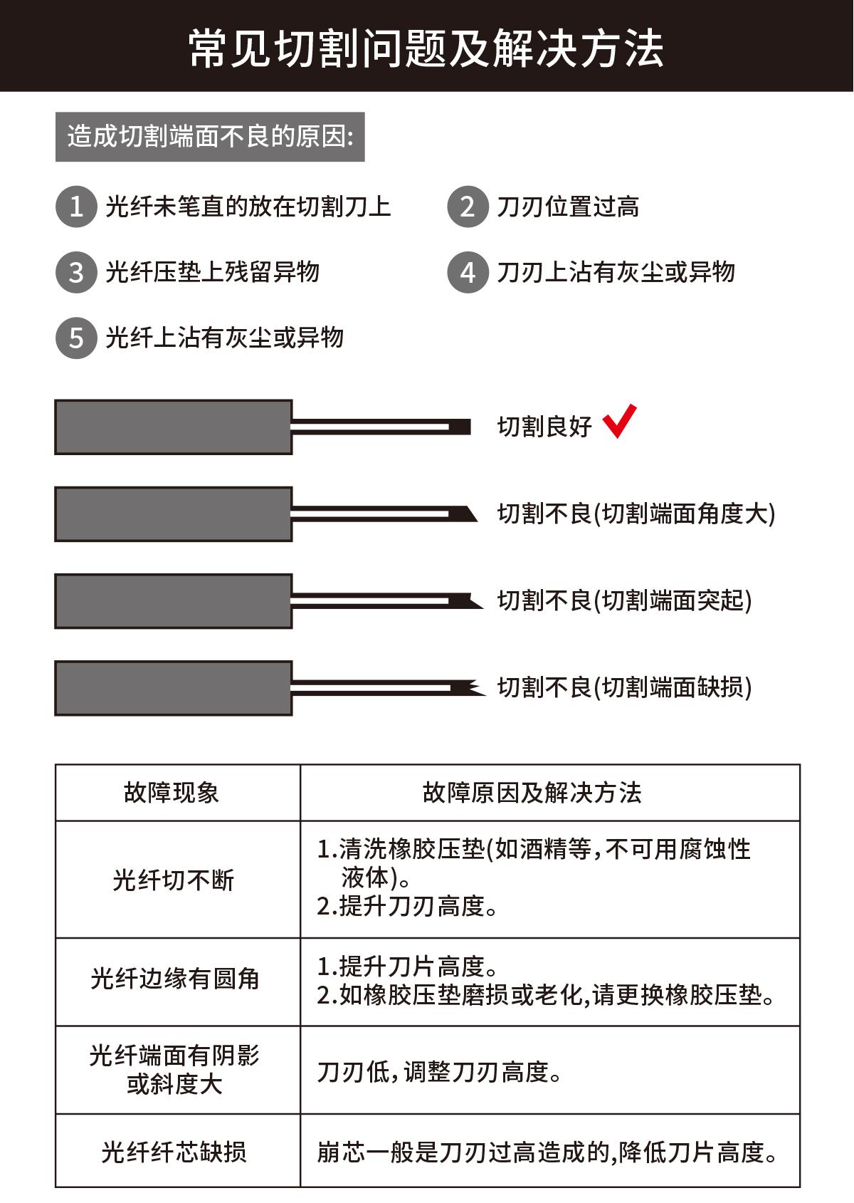 使用前请确认光纤已清洁无灰尘或异物,避免影响切割质量。
