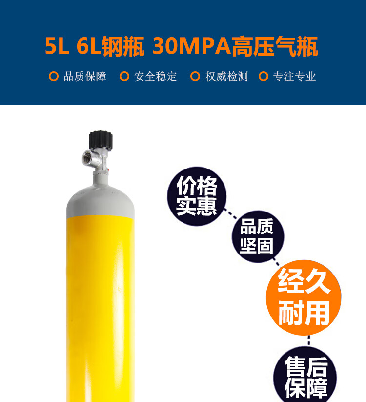 充气要求:充气时必须使用专用充气设备,充气压力不得超过气瓶的最大工作压力(30MPa)。