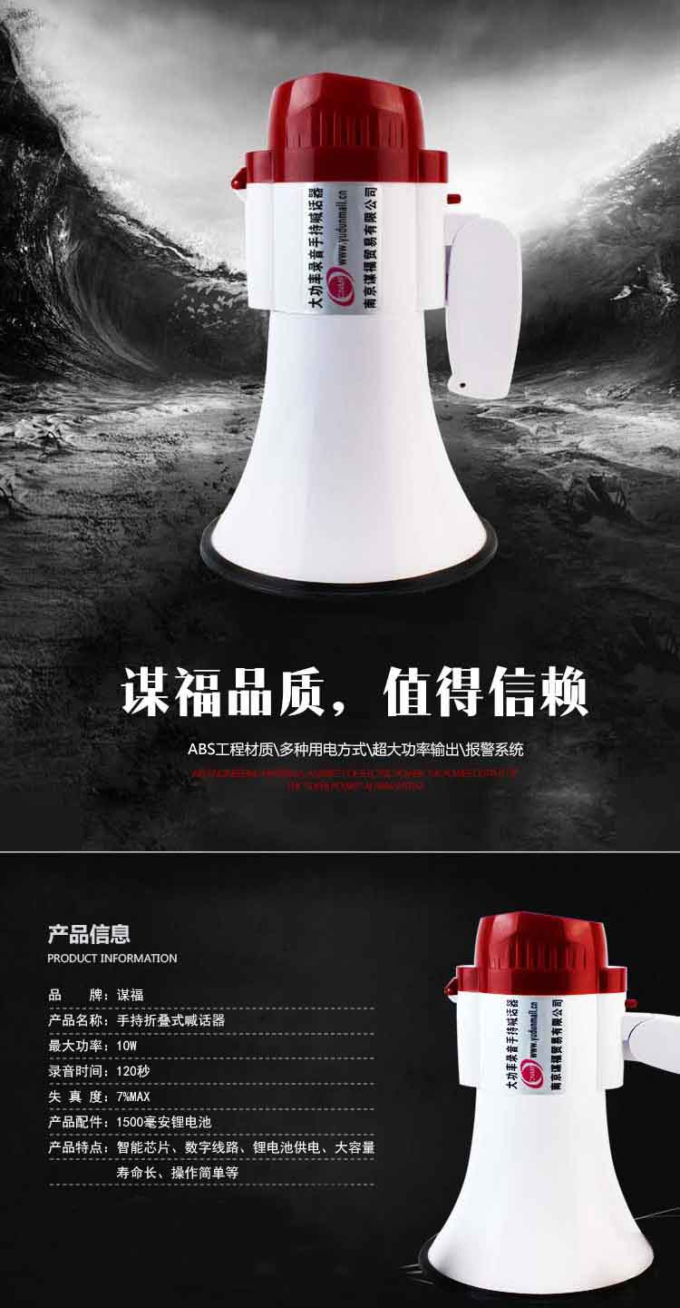 谋福(CNMF)89 喊话器 锂电叫卖手持扩音喇叭 120秒录音 大声8小时续航(手持扩音喇叭 120秒录音)