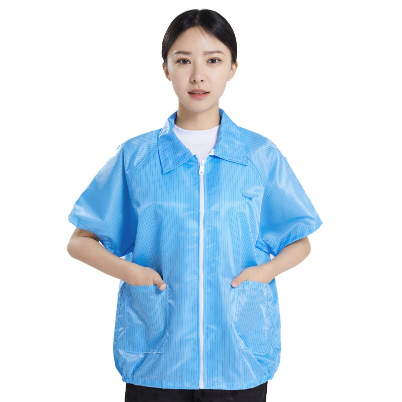 该防静电防尘短袖大褂工衣适用于多种工业和实验室环境,具体使用场景包括: