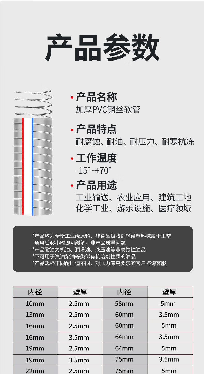 谋福(CNMF)PVC钢丝软管 塑料透明水管 耐压耐油水泵钢丝管(内径19mm 厚度3MM [水泵 工业输送 ])