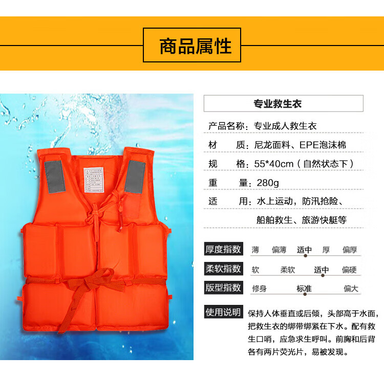 志臻 成人救生衣浮力背心 加厚牛津面料带口哨反光片 PY01