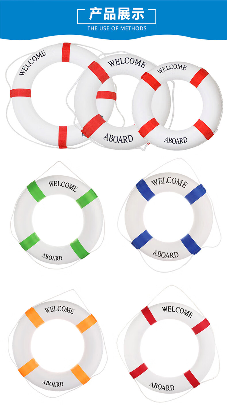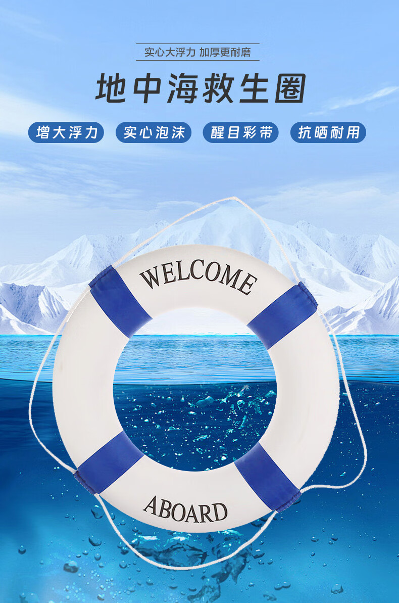 志臻 地中海装饰救生圈 专业实心泡沫圈游泳圈加厚 绿色大号 (外径72内径44)